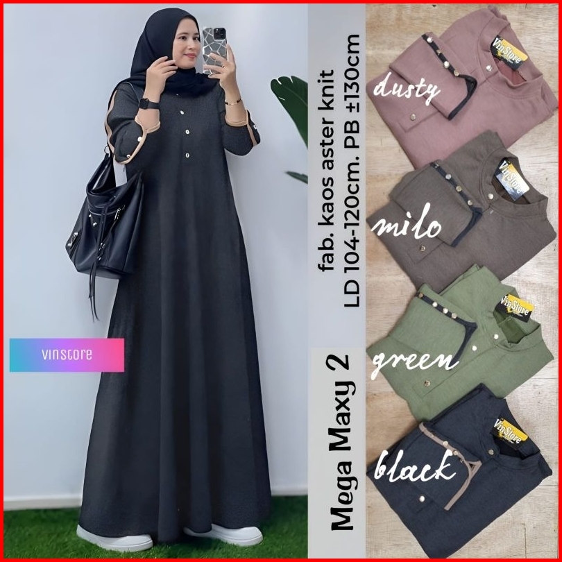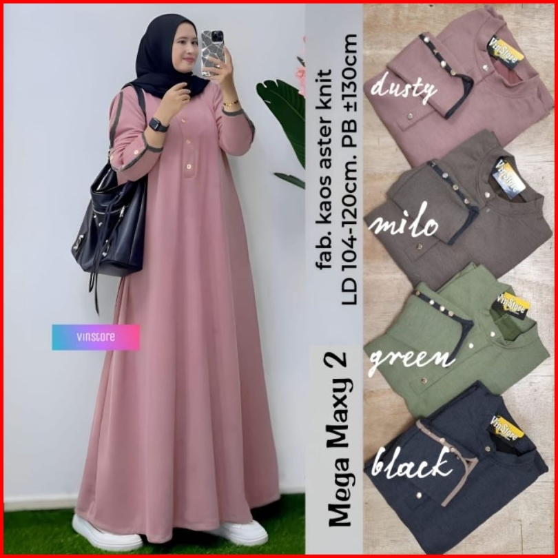 Mega Maxy 2 Dress Bahan Kaos Aster Knit Lengan Panjang Inara Aplikasi Kancing Busui Friendly