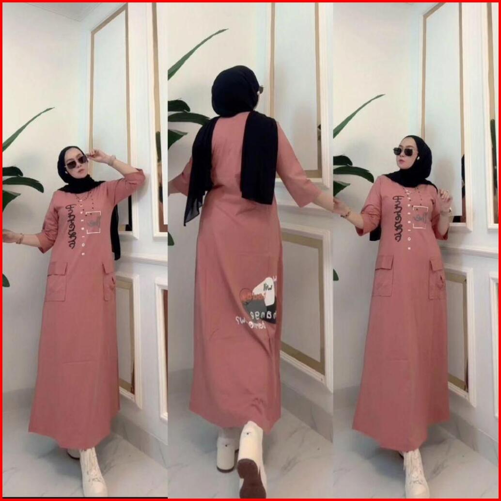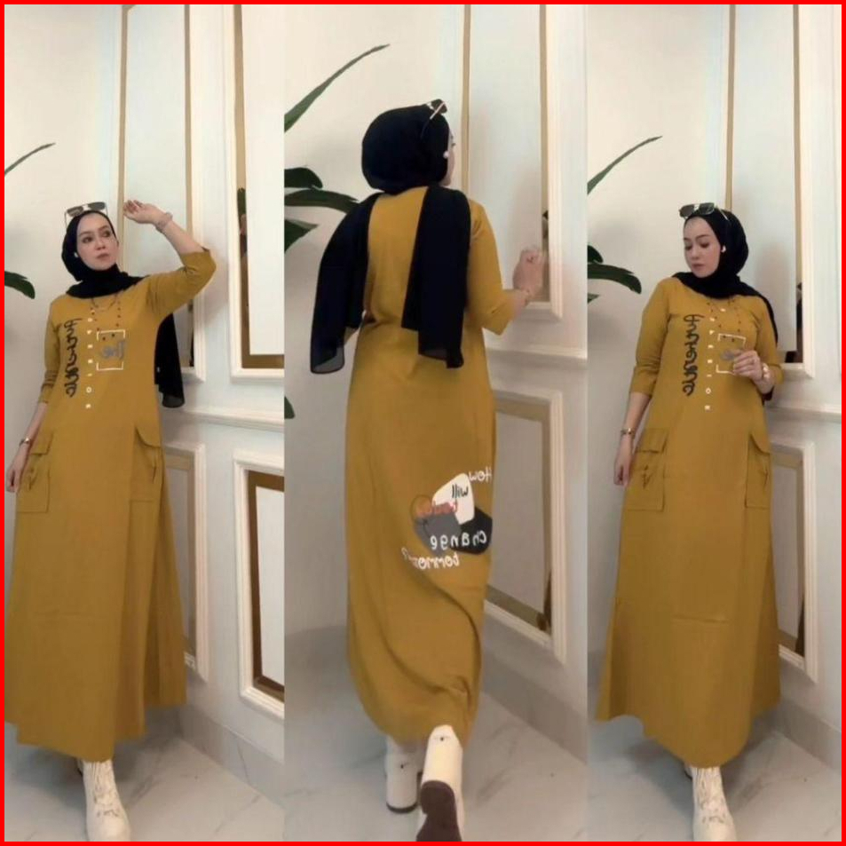 Midi Dress Rawis Wanita Model Nabilqu Cargo By Nabil Kaos Combad 20s Premium Viral Gamis Wanita By Nabil Terbaru