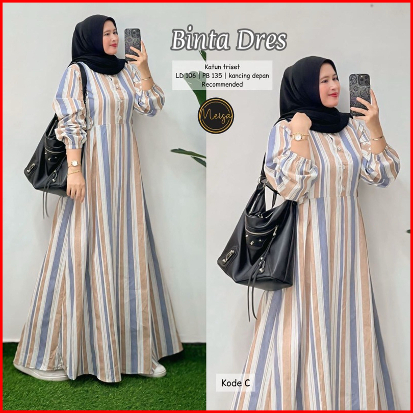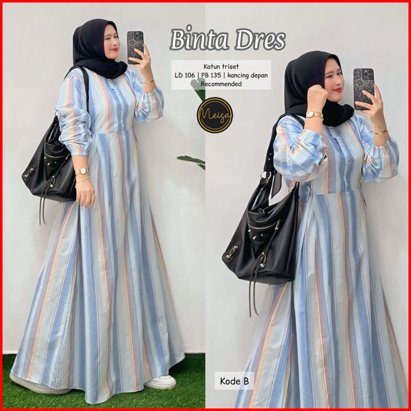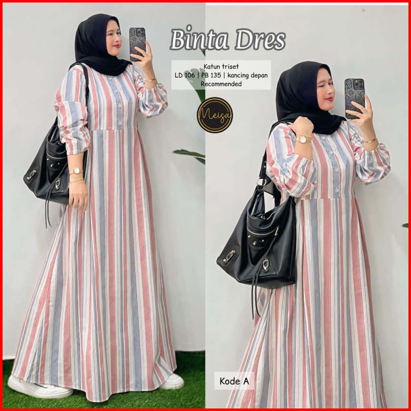 Dress Gamis Salur Wanita Katun Haruka Terbaru Binta Dress Gamis Kotak Kotak