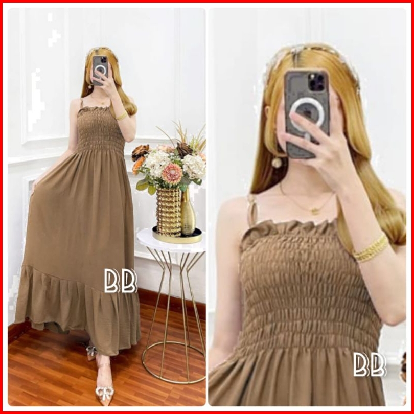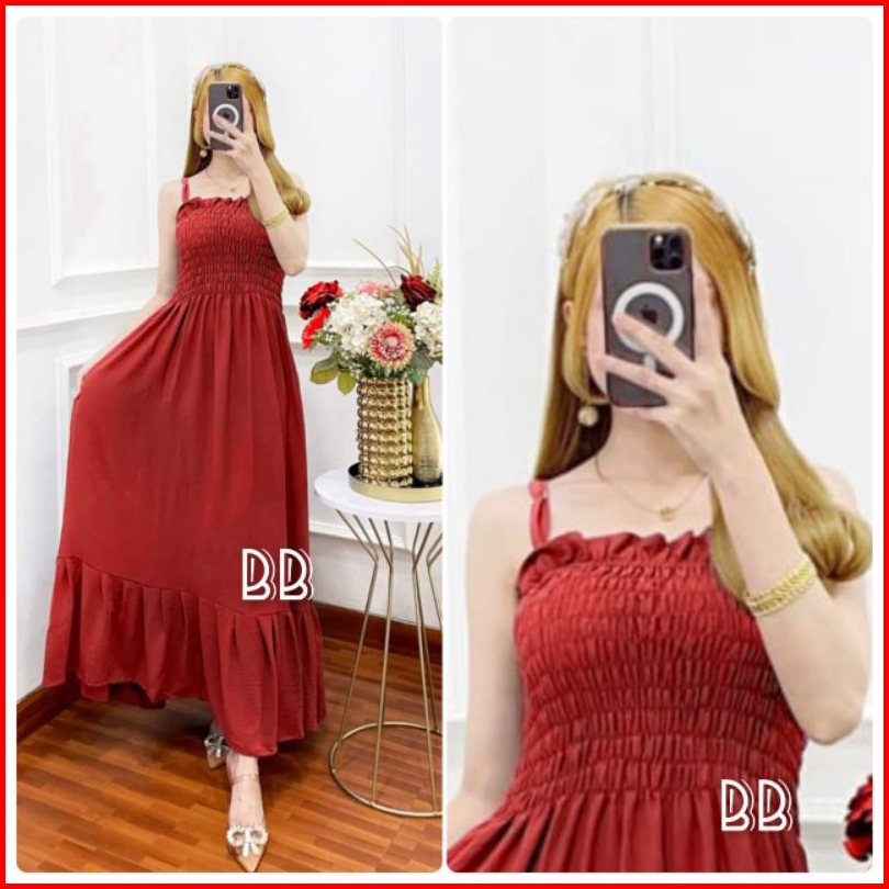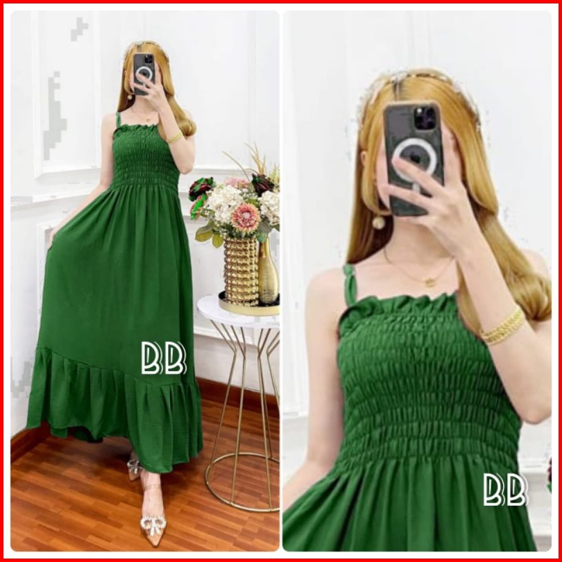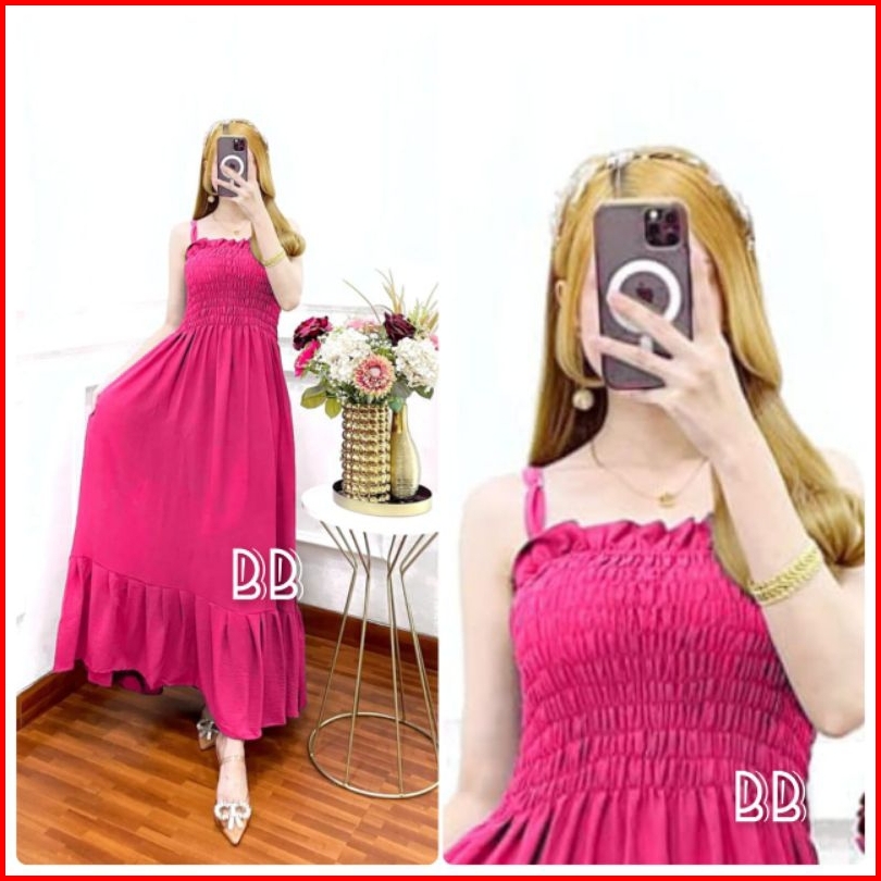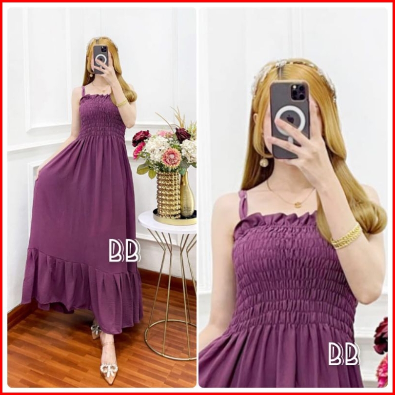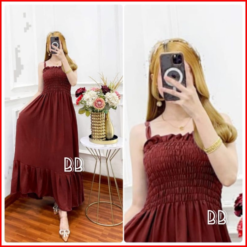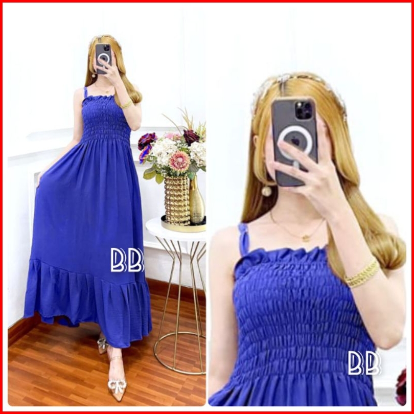 Korean Dress Jumbo Crinkle Airflow Dress Kerut Tali Smoke Panjang Crinkle Premium Baju Wanita Big Size