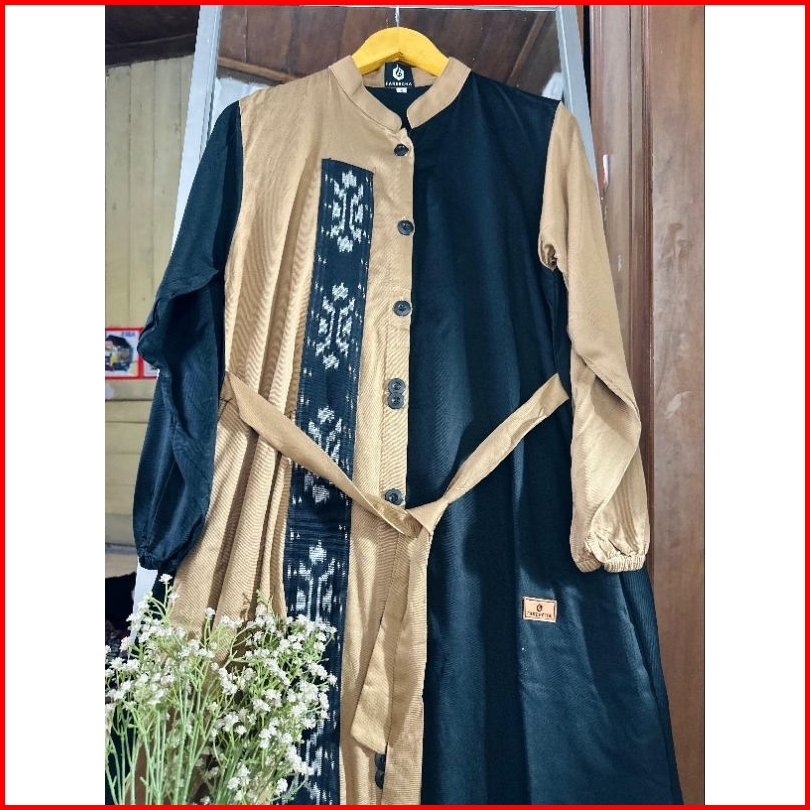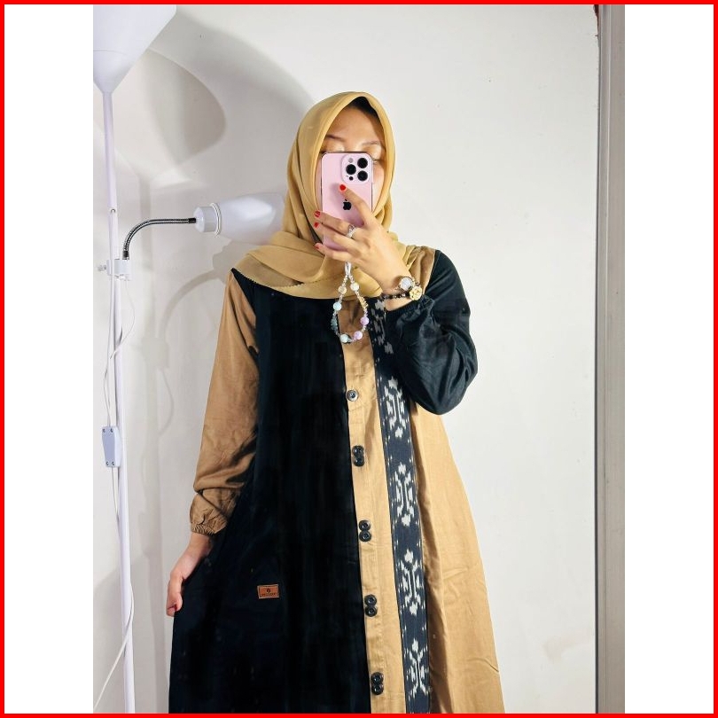 Daily Dress Twotone Mocca Milk Mix Tenun By Fareecha. Gamis Twill Fareecha. Gamis Seragam
