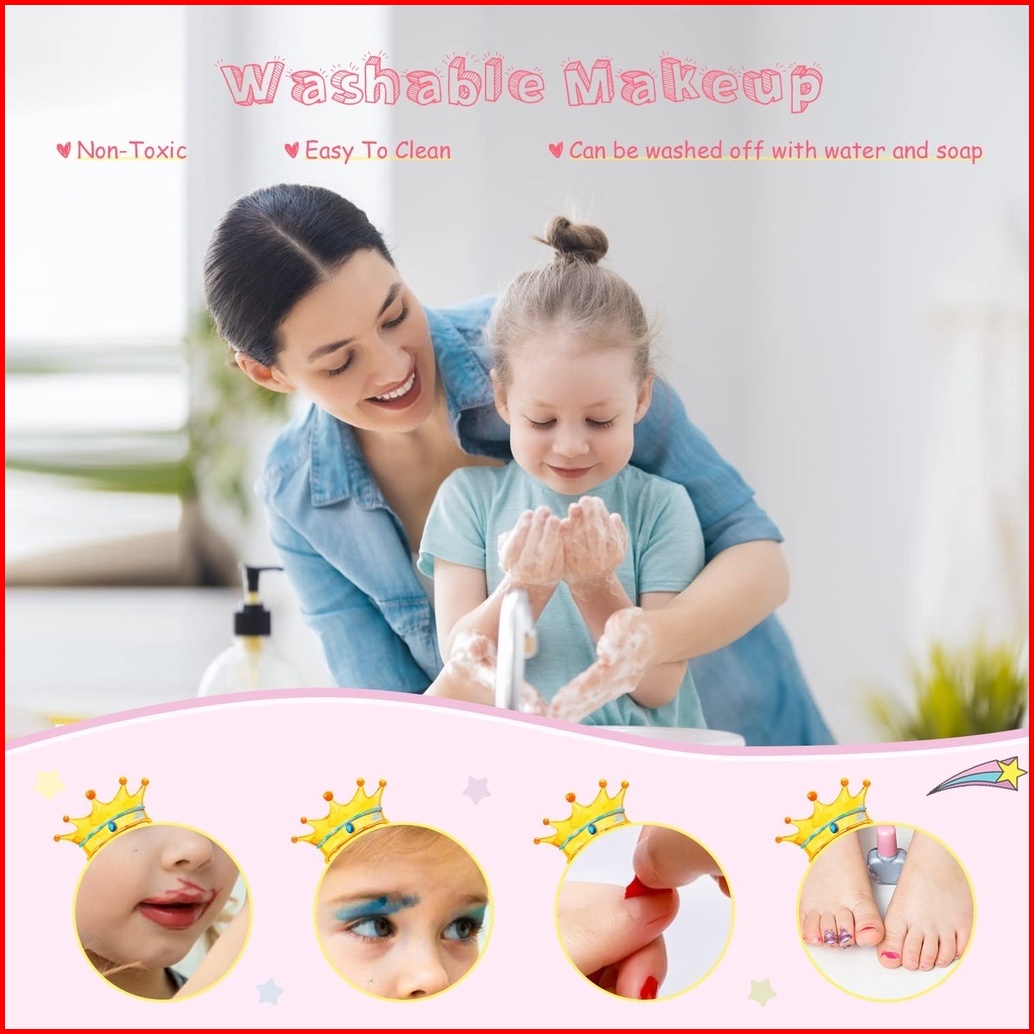 Girls Makeup Toys Kosmetik Kotak Bermain Princess Makeup Girl Toy Play Set Lipstik Eye Shadow Safety Kit Mainan Tidak Be