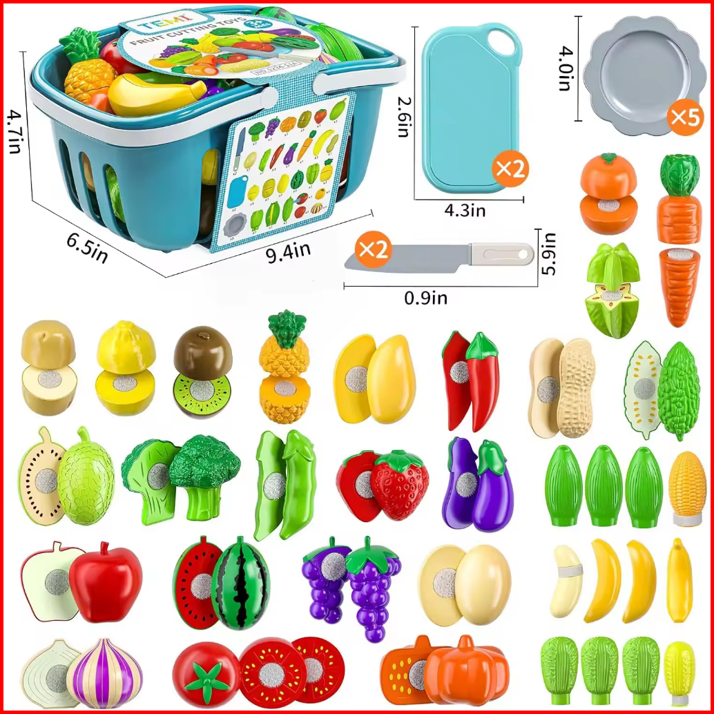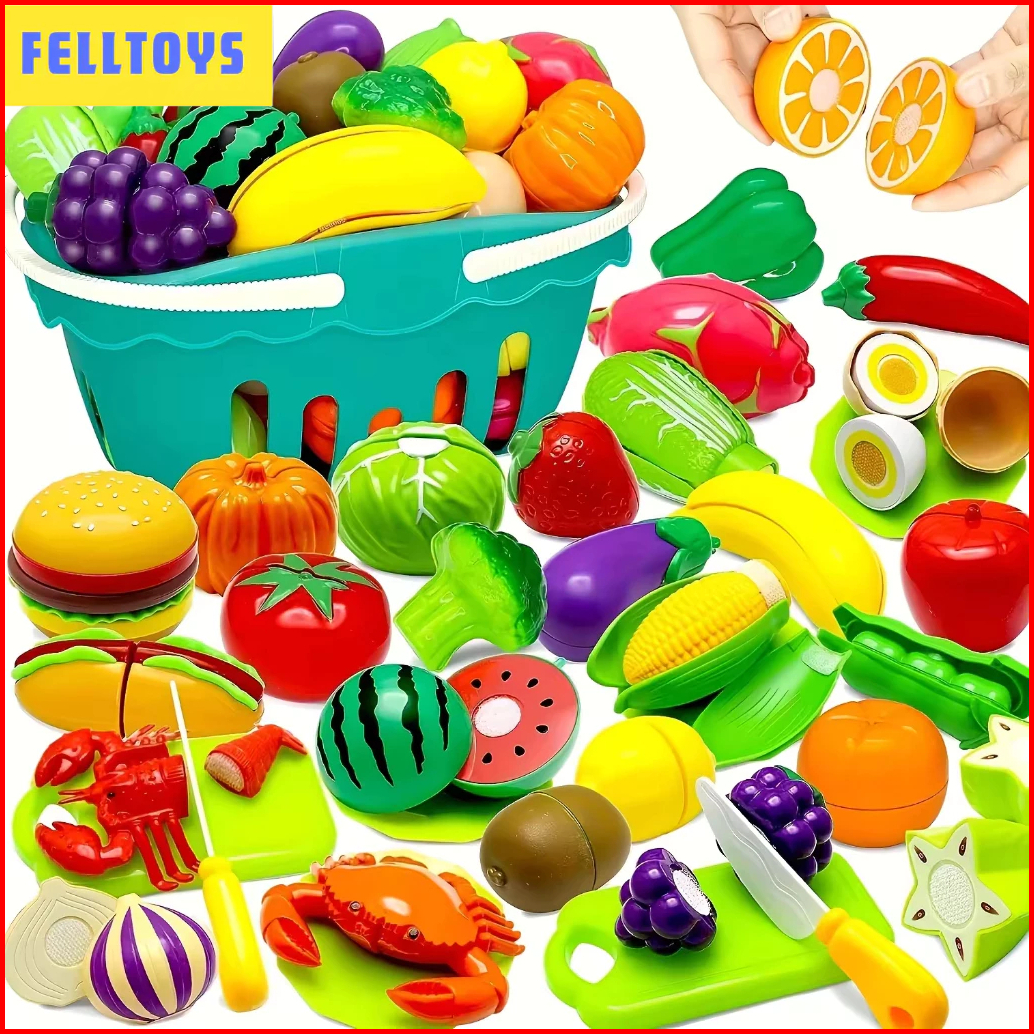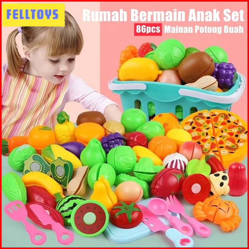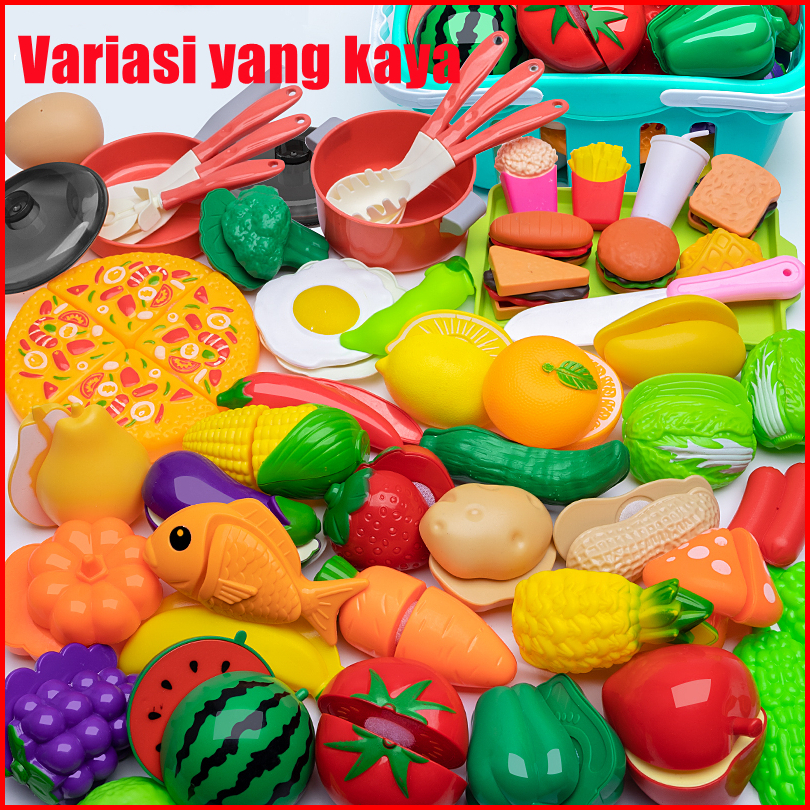 Mainan Buah Potong Mainan Sayur Buah Masak Masakan 86pcs Set Mainan Kitchen Toy