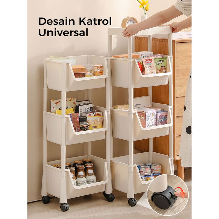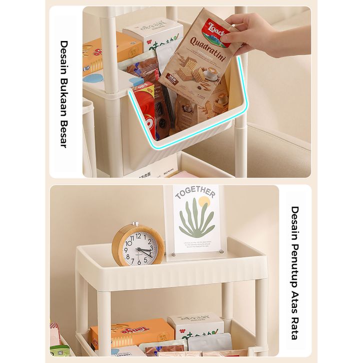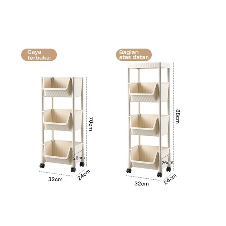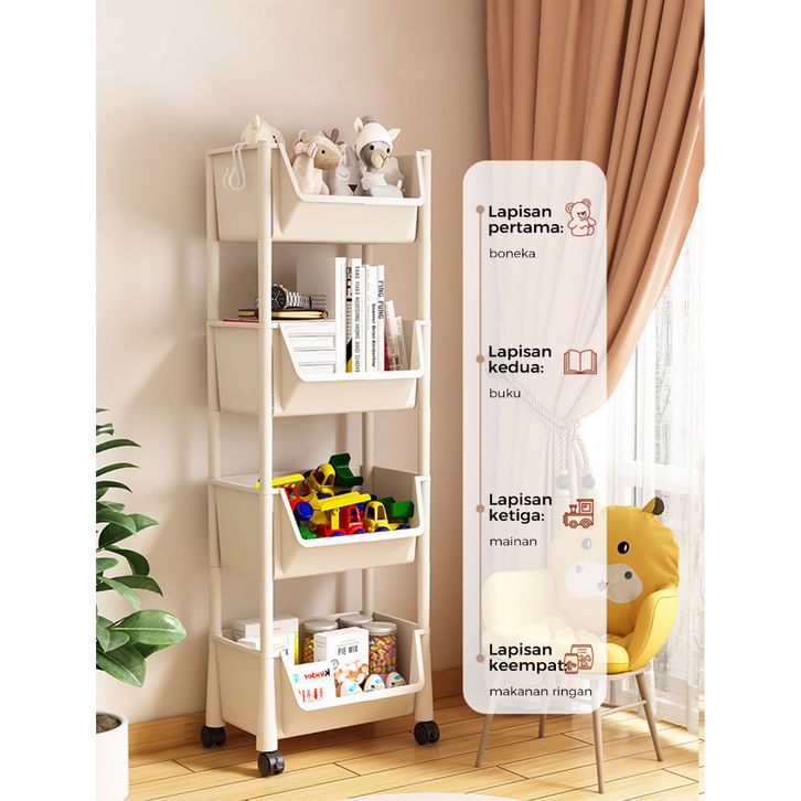 Rak Susun Penyimpanan Terbuka Serbaguna Rak Trolley Susun Roda Rak Buku Tebal Plastik Toy Storage Perlu Dirakit