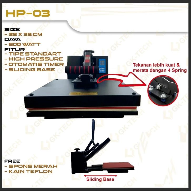 Mesin Heat Press Sablon Kaos 38x38 Digital Premium