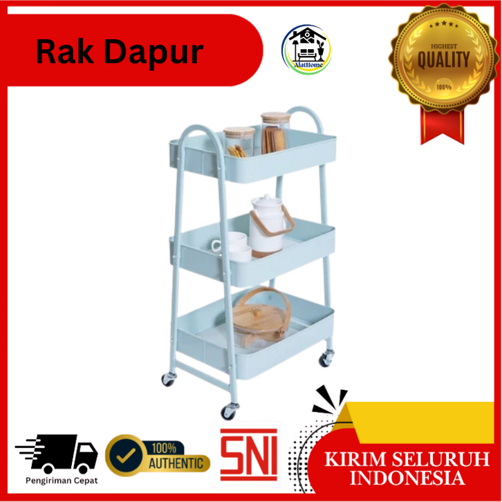 RAK DAPUR SERBAGUNA MINIMALIS SUSUN METAL 3 TINGKAT RODA HARGA TERJANGKAU TERMURAH SERBA GUNA TERBAIK