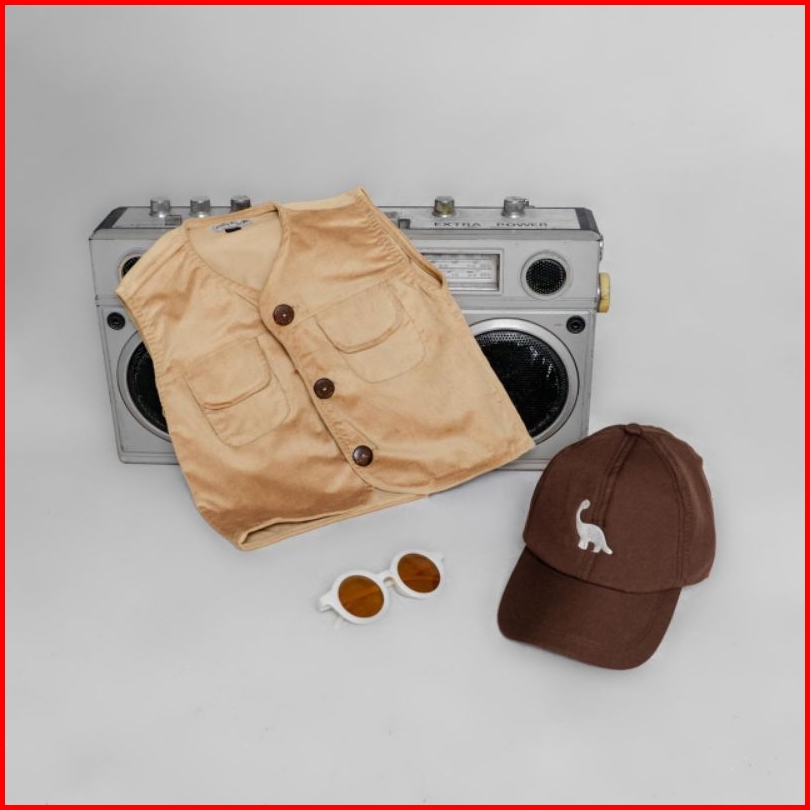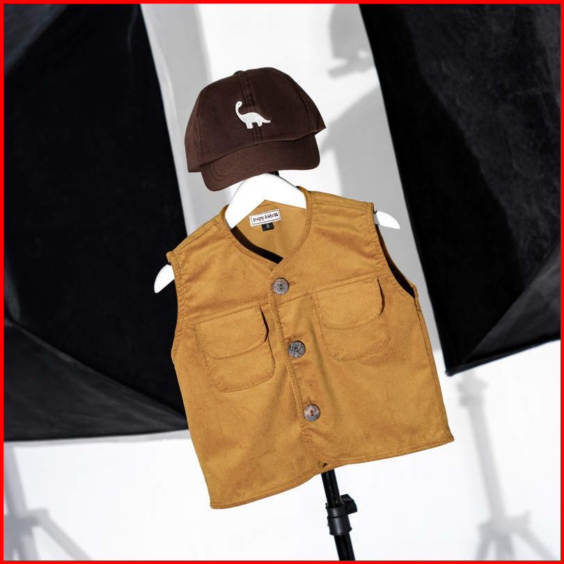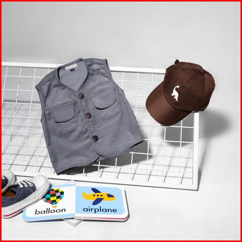 Papy.kids - Rompi Corduroy Klasik Anak Free Topi Vest Anak Free Topi