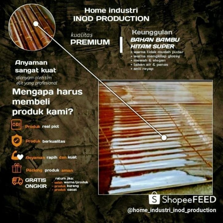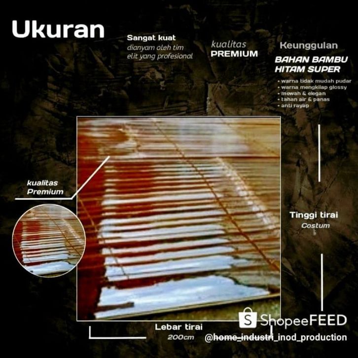 DISCON Tirai Bambu hitam vernis size 2x2 meter