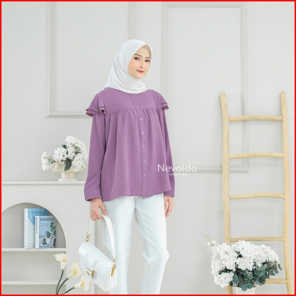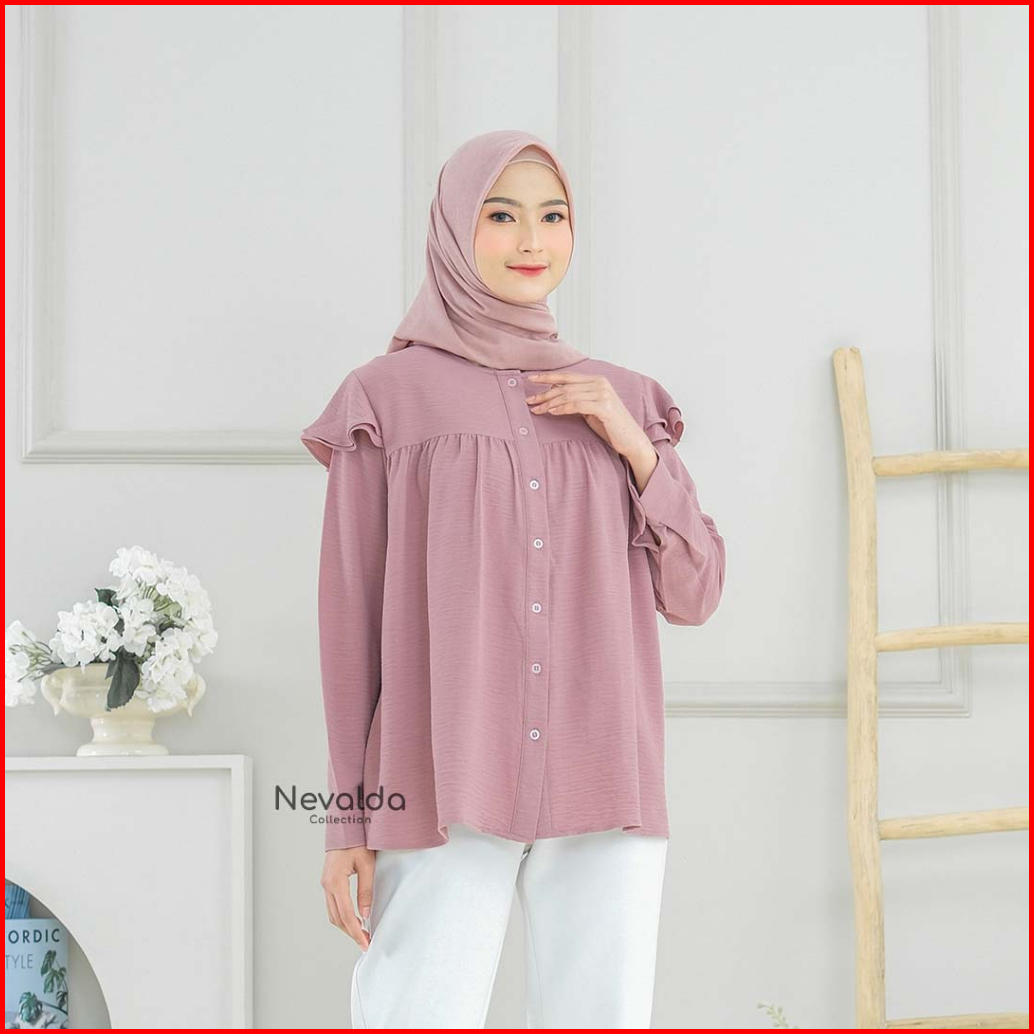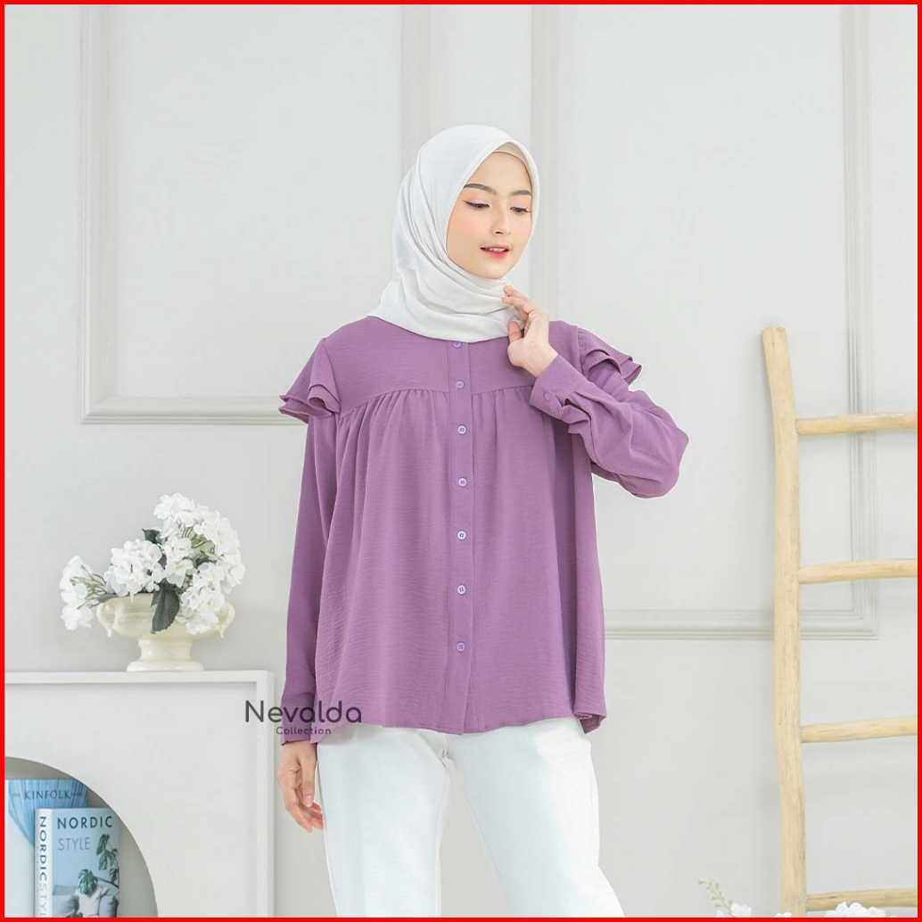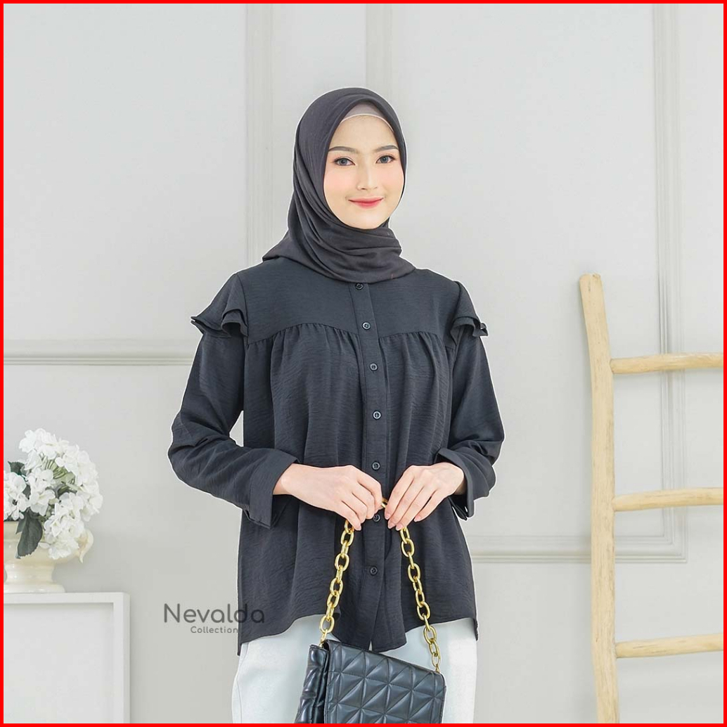 Nevalda - Peony Atasan Shirt Blouse Premium Kemeja Lengan Panjang Wanita Kekinian