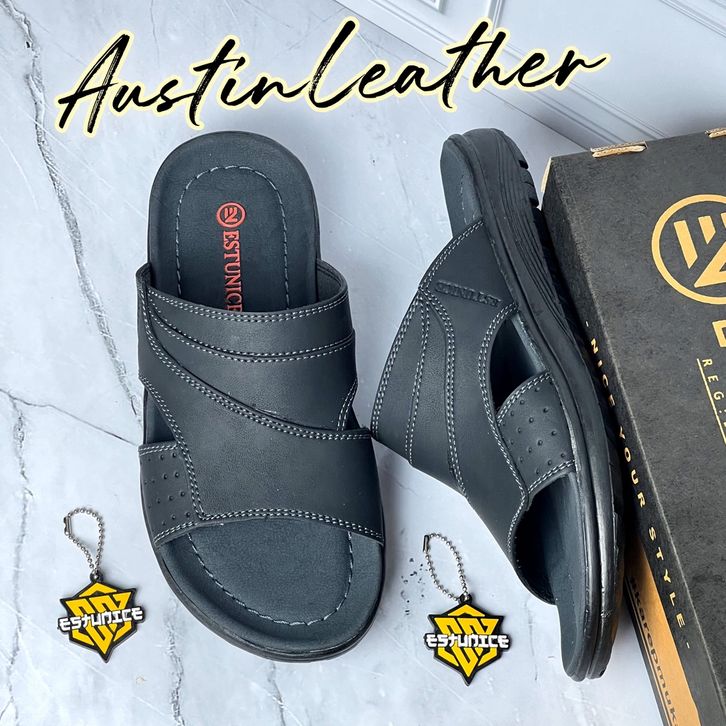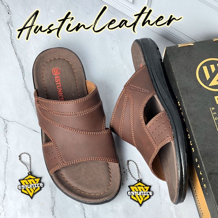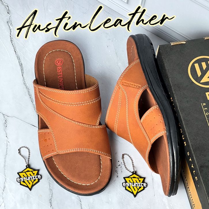 {PROMO} SANDAL COWOK Estunice Sandal Pria Kulit Sendal Slop Selop Slip On Slide Pria Hylos Slop Coklat SENDAL COWO