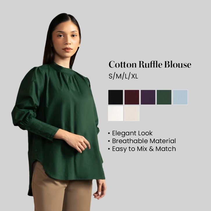 THENBLANK Cotton Ruffle Blouse Baju Kemeja Blouse Atasan Wanita TERLARIS