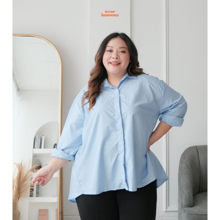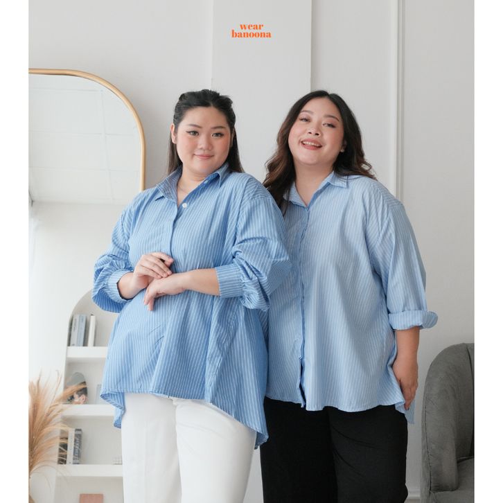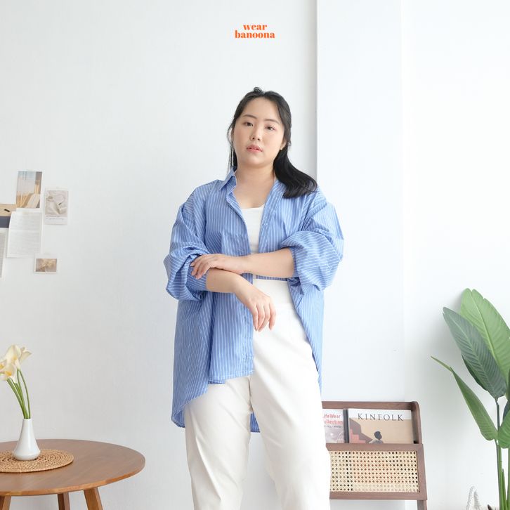 wear.banoona - Shina Oversized Top Atasan Kemeja Salur BSize Wanita Jumbo TERLARIS