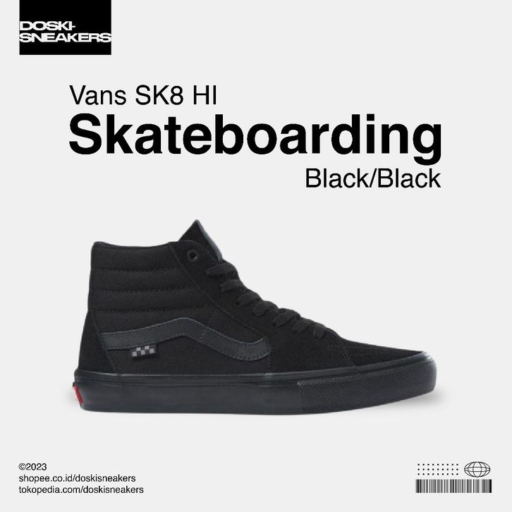 Sepatu Vans SK8 HI Pro Skateboarding Black Black 100% ORIGINAL BNIB Sneakers Casual Pria Wanita Sepatu Ori Murah Sepatu