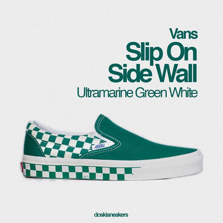 Sepatu Vans Slip On Sidewall Checkerboard Ultramarine Green White ORIGINAL Sepatu Pria Wanita Ori Murah