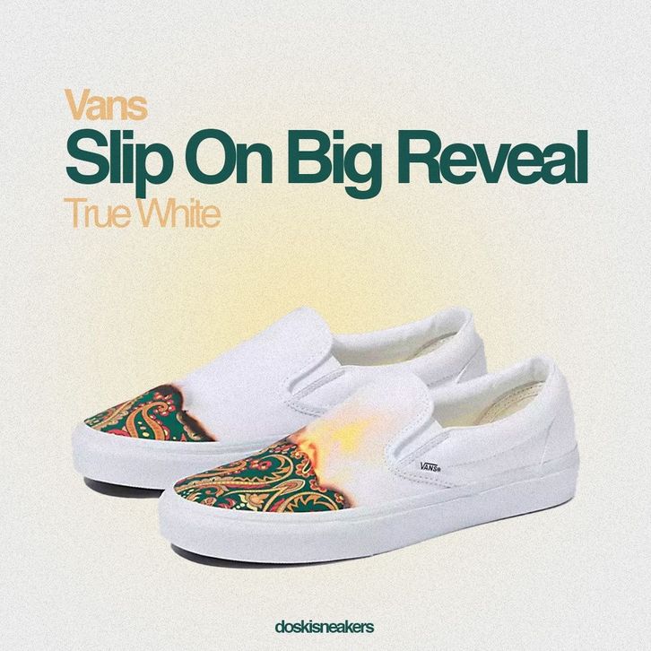 Sepatu Vans Slip on Big Reveal True White 100% ORIGINAL Sepatu Pria Wanita Ori Murah Sepatu Slip on Pria Sepatu Vans Or