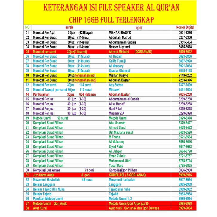 PUTIH + MUROTTAL, KUNING+MUROTTAL, HITAM + MUROTTAL, TOSKA + MUROTTAL, MERAH + MUROTTAL, BIRU + MUROTTAL, PINK + MUROTTAL, UNGU + MUROTTAL, HIJAU + MUROTTAL