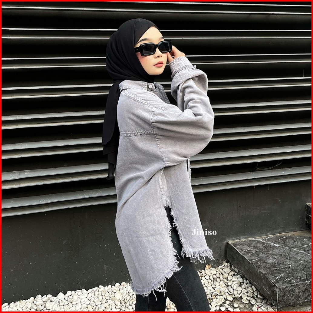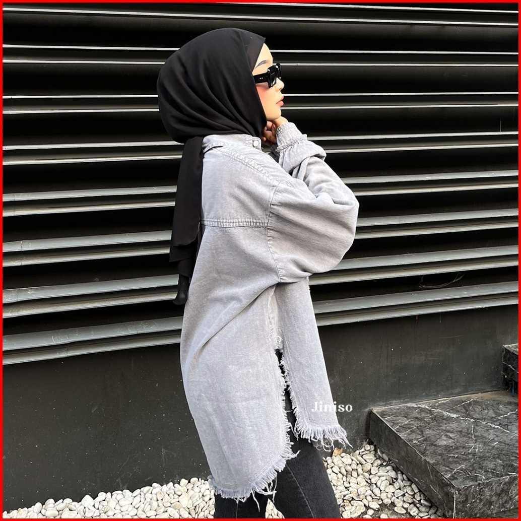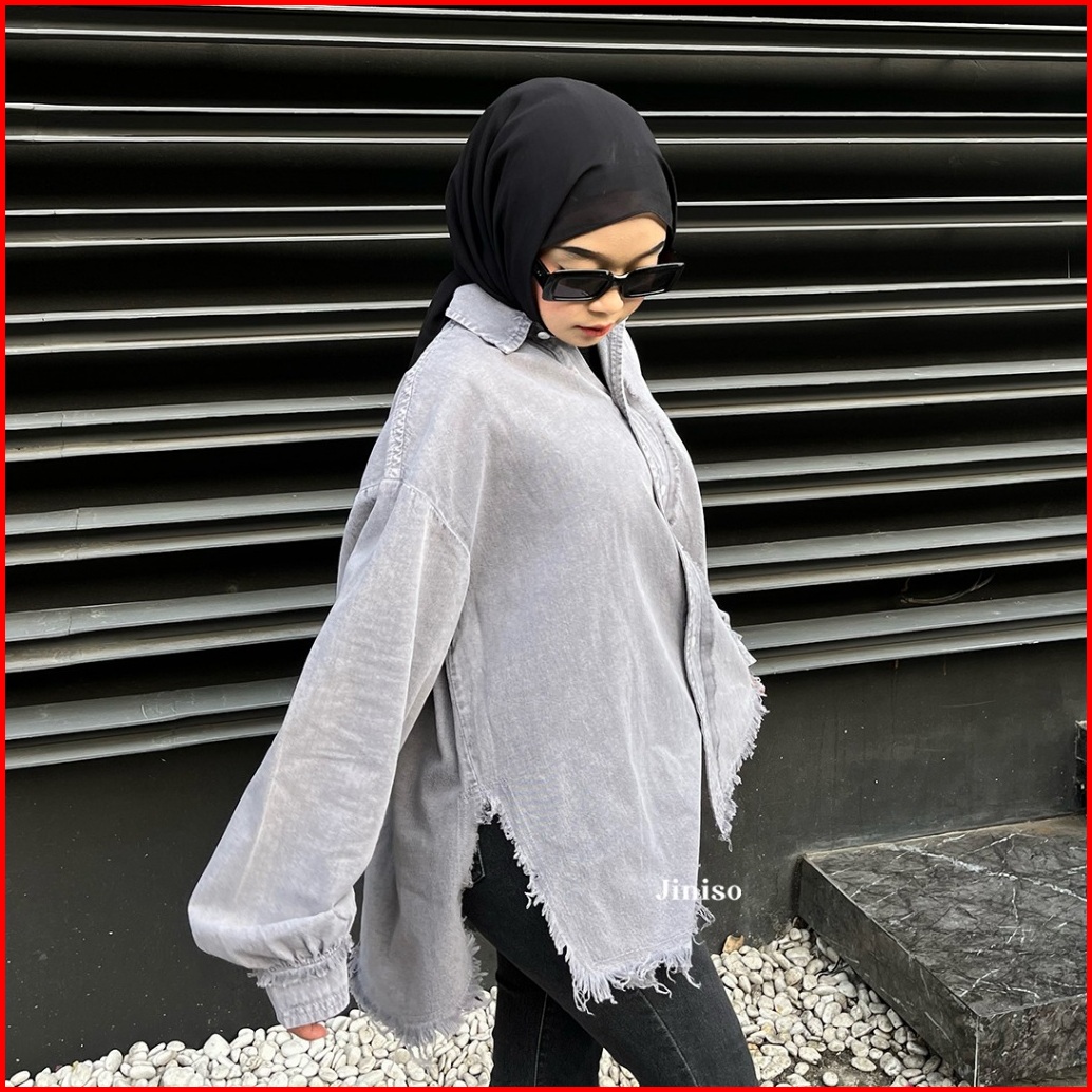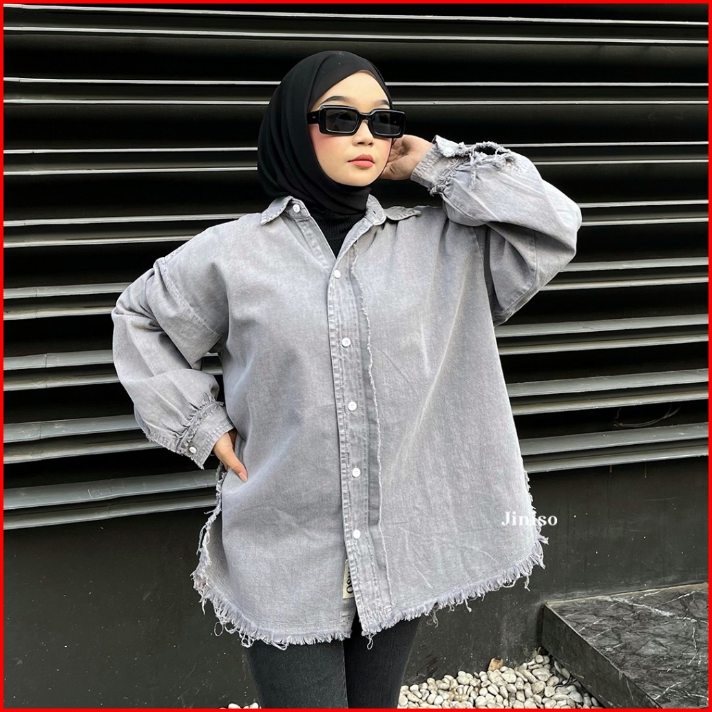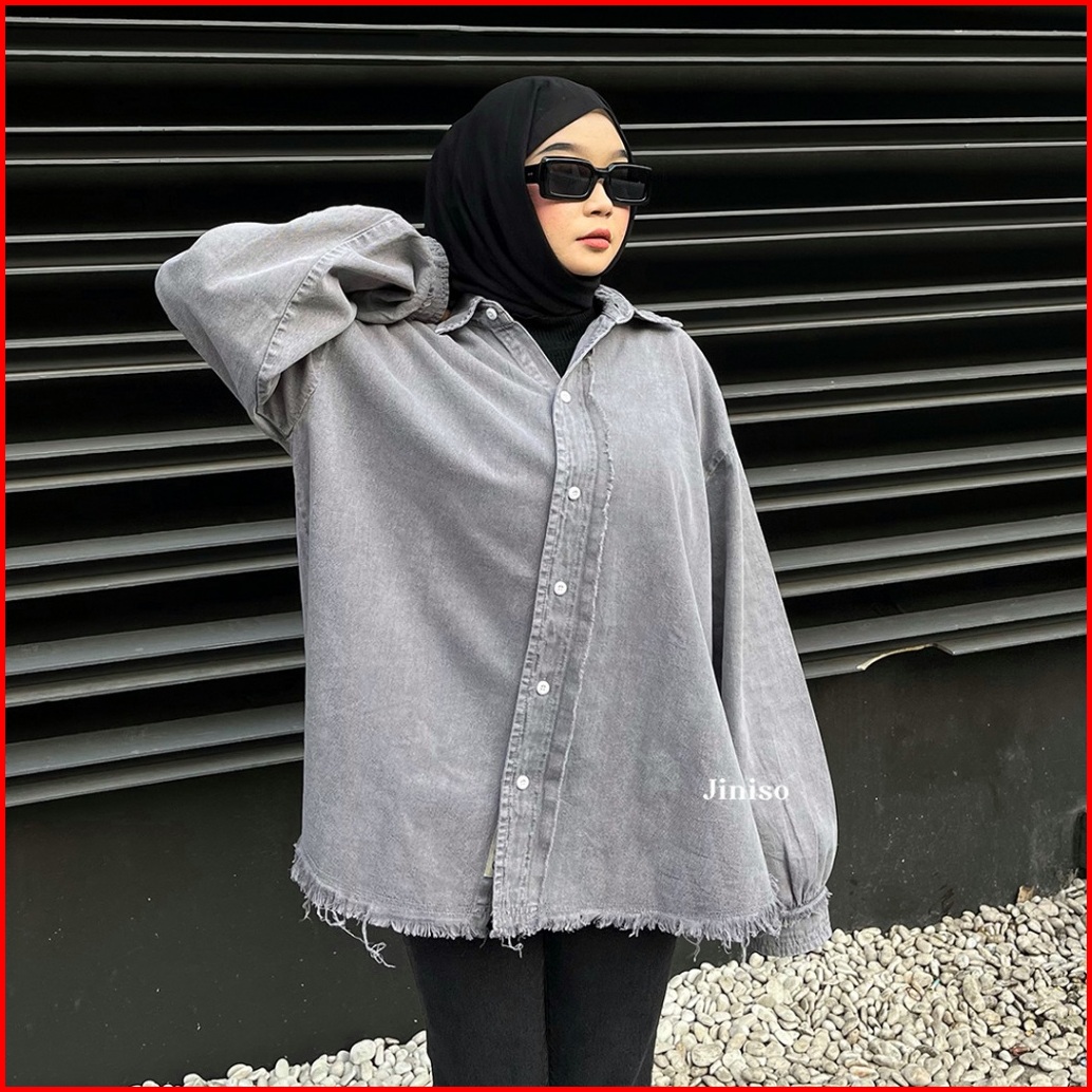 Jiniso - Kemeja Denim Raw Snow Grey Oversize Unisex Hyper Active