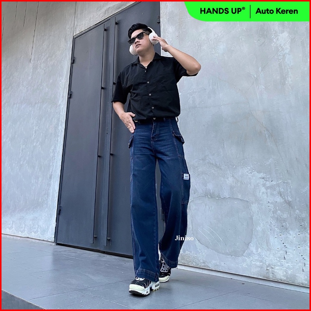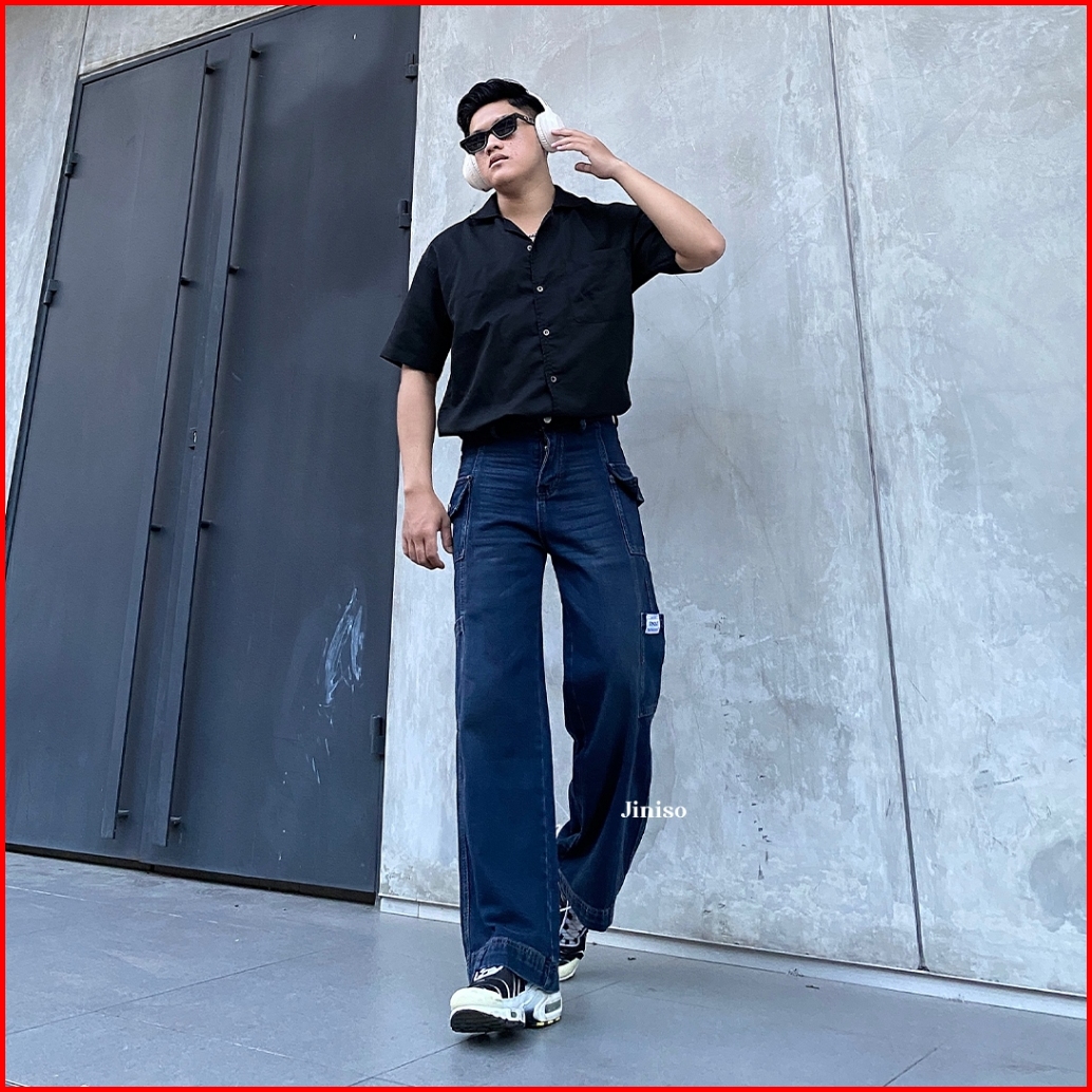 Jiniso Cargo Baggy Denim Jeans Pria 416
