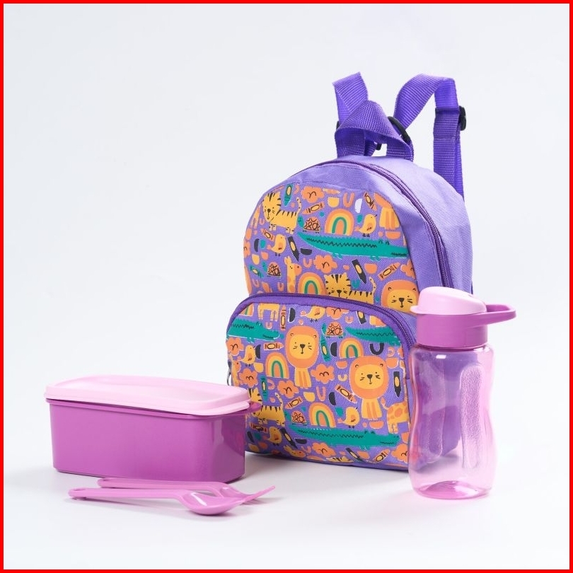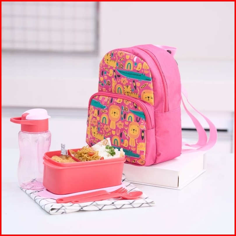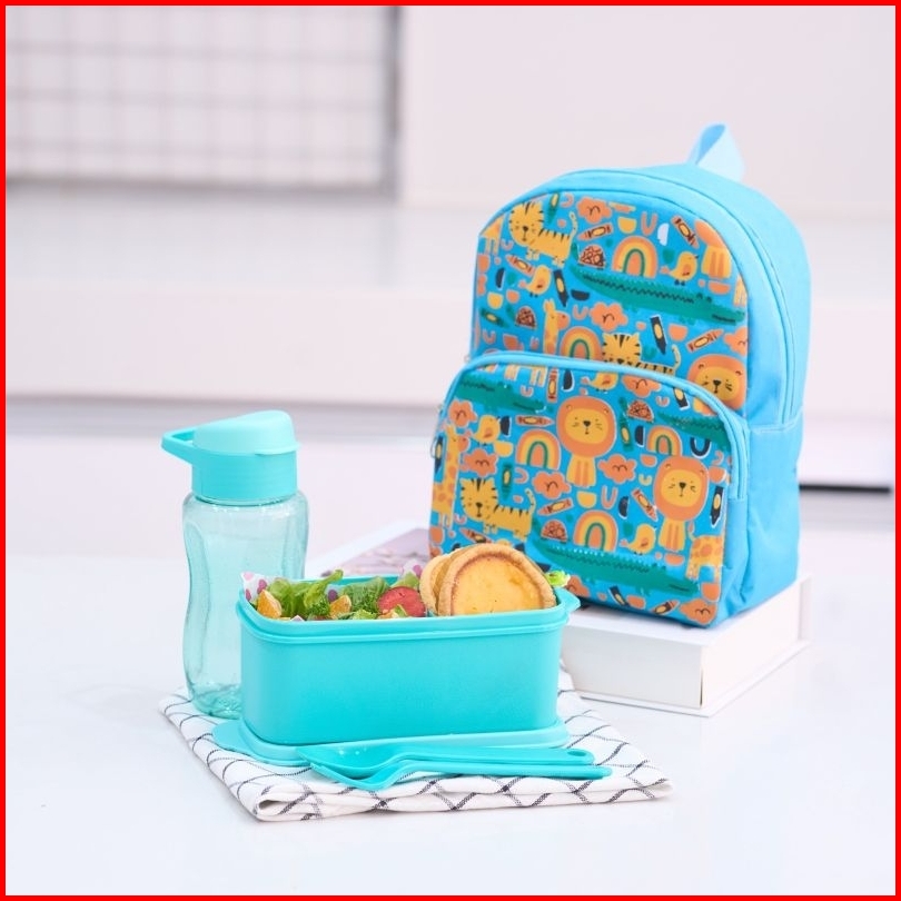 Tas Ransel Backpack Lunchbox Set Kotak Makan Botol Sendok Garpu