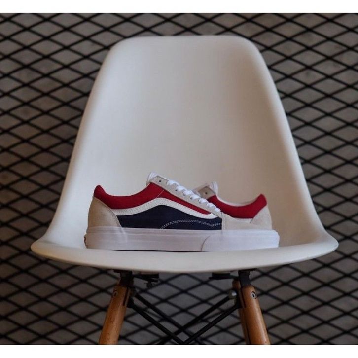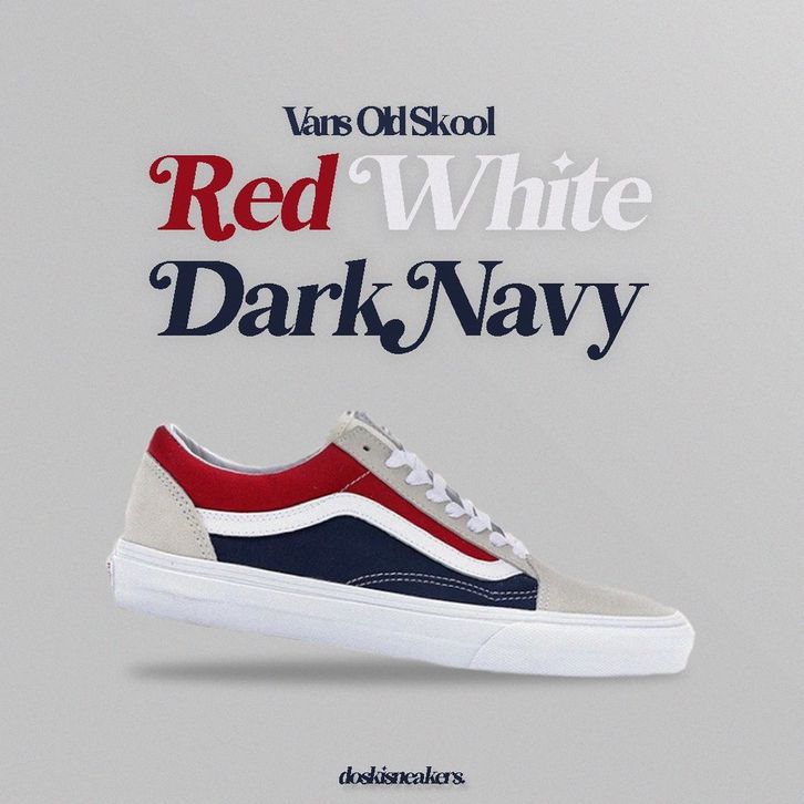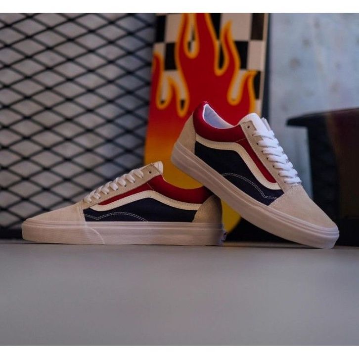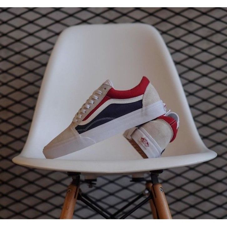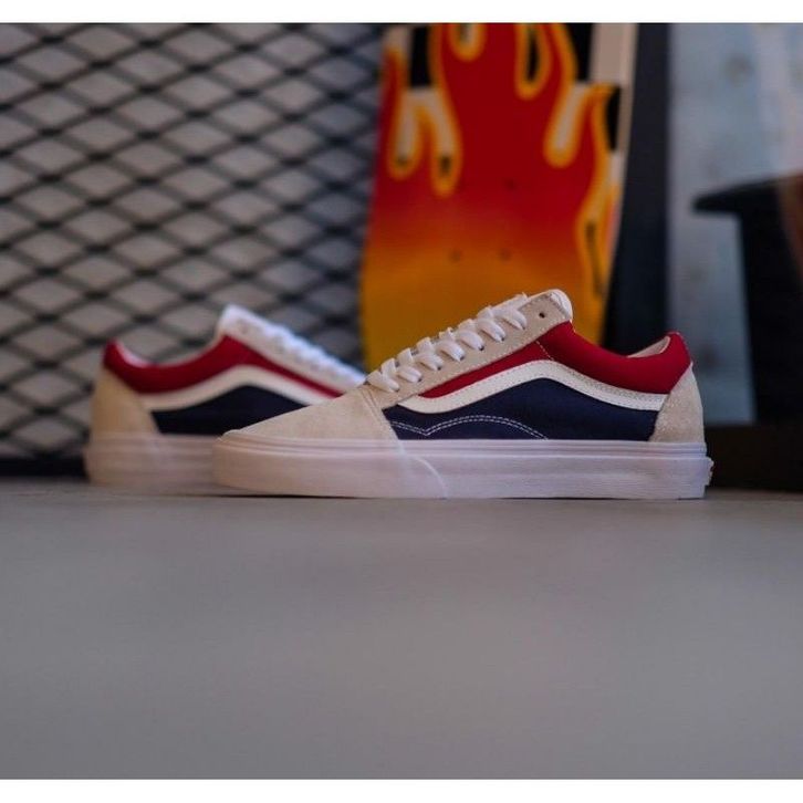 Sepatu Vans Old Skool Retro Block White Red Dark Navy (PEPSI) Original Sneakers Casual Pria Wanita Ori Murah