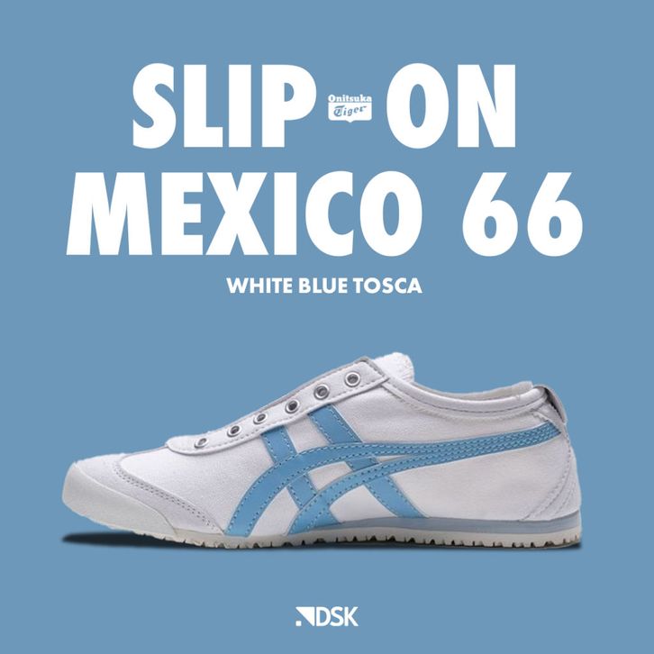 Sepatu 0nitsuka Tiger Slip on Mexico 66 White Blue Tosca 100% ORlGINAL Sepatu Slip on Wanita dan Pria Sepatu Slip on 0n