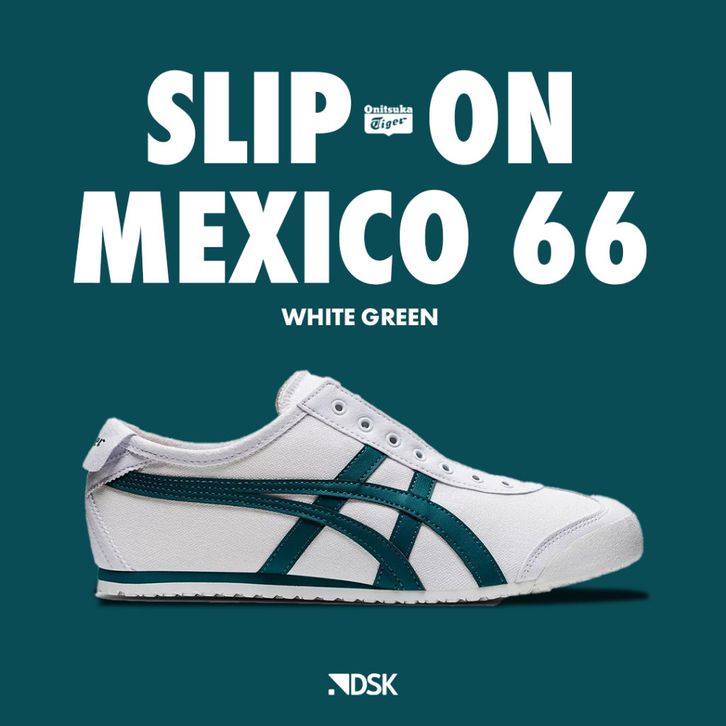 Sepatu 0nitsuka Tiger Slip on Mexico 66 White Green 100% ORlGINAL Sepatu Slip on Pria Wanita Sepatu Slip on Branded Ori