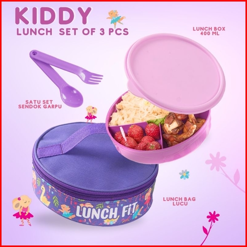 Tas Bekal Anak Kotak Makan Bulat Sendok Garpu Kiddy Set