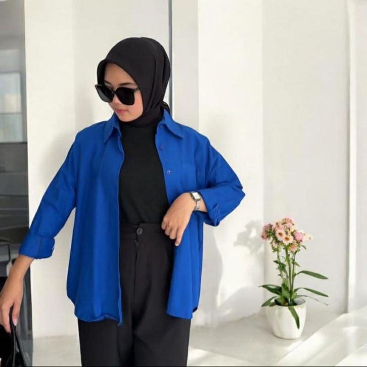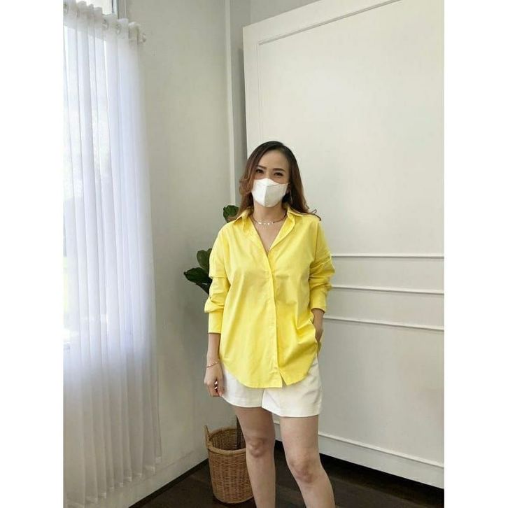 Kemeja Wanita Terbaru dan Kekinian Polos Shakila Twill Katun Baju Kerja Kantor Basic Jumbo Atasan