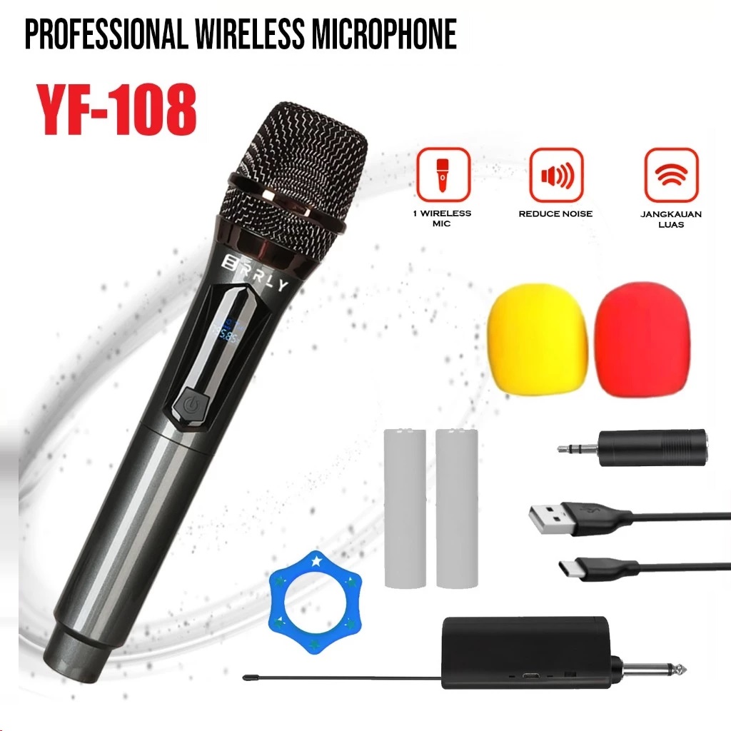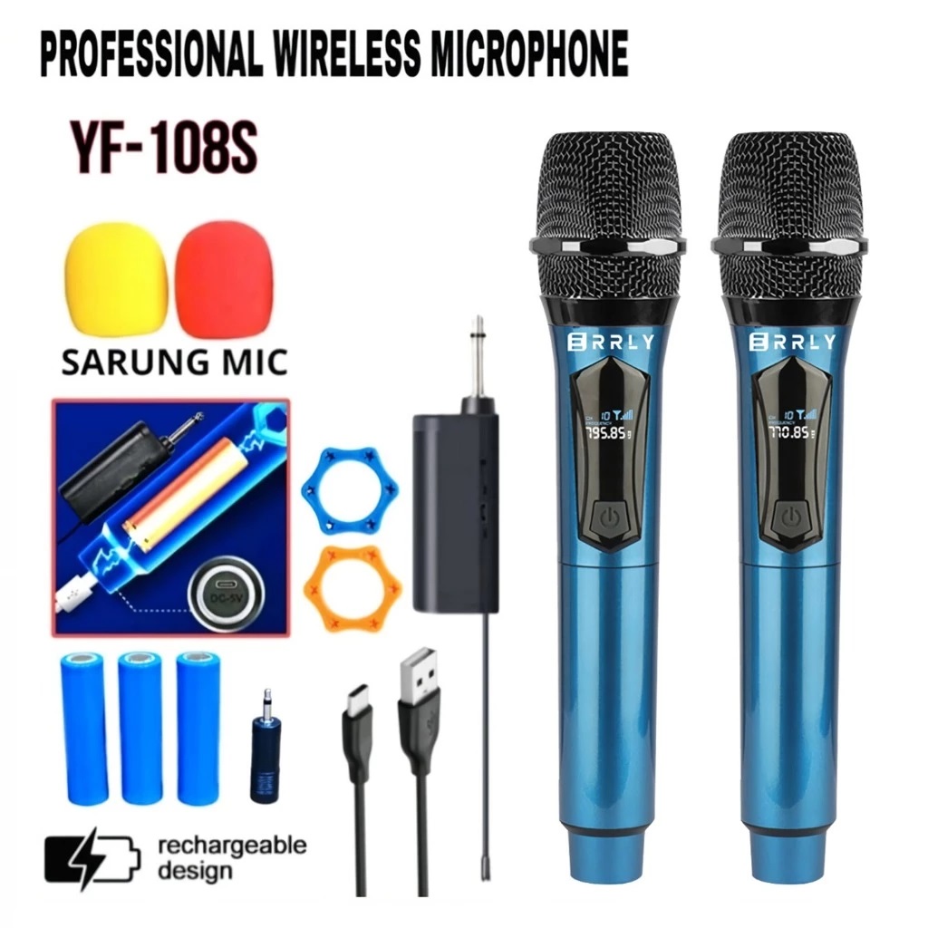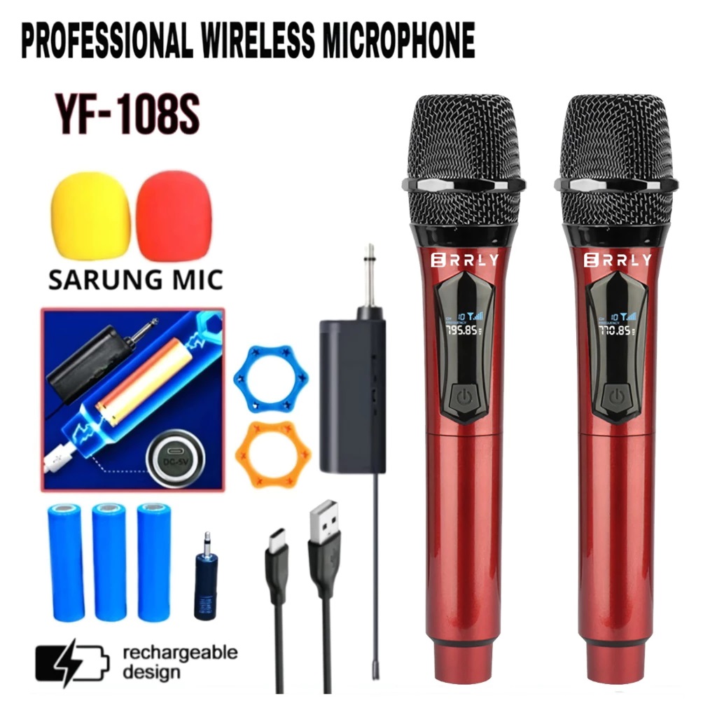 Mic Karaoke Wireless DUAL Microphone Karaoke ERRLY YF108 YF108S With Receiver System Mic Karaoke Genggam Recahrge / Bisa