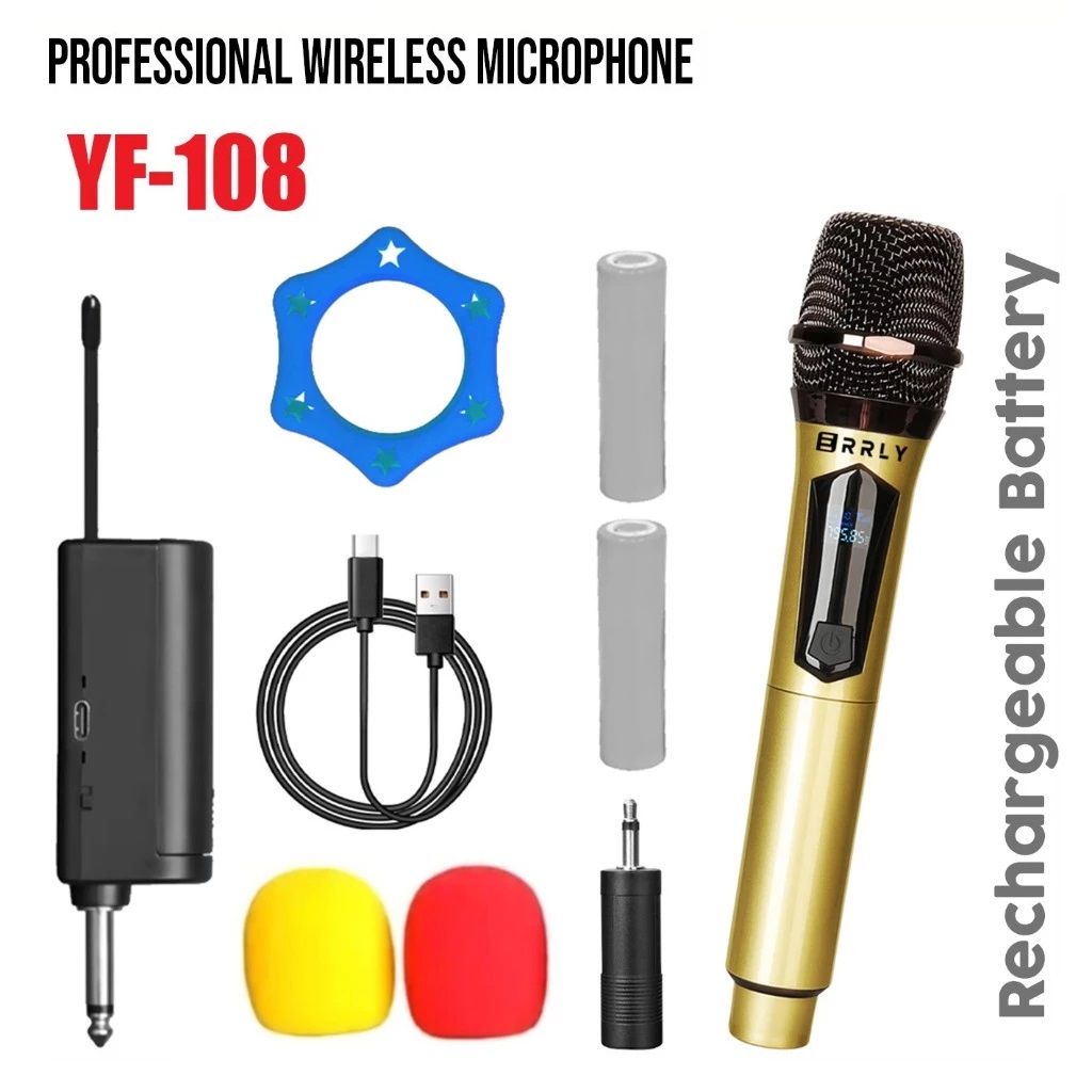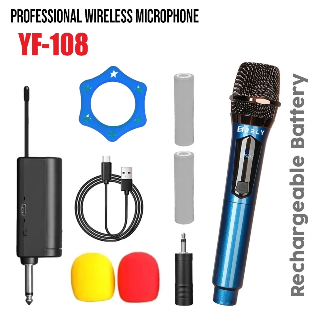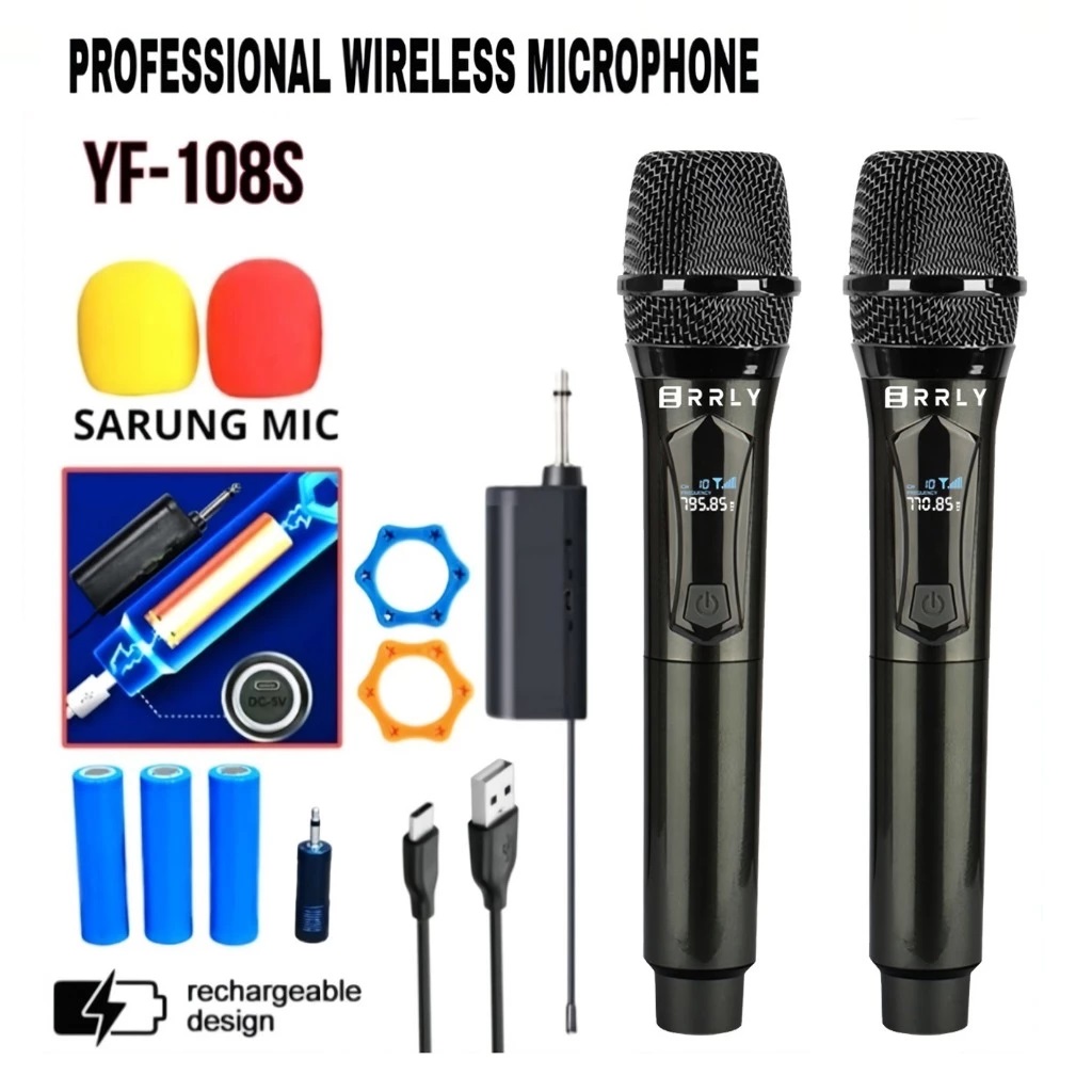 Mic Karaoke Wireless DUAL Microphone Karaoke ERRLY YF108 YF108S With Receiver System Mic Karaoke Genggam Recahrge / Bisa