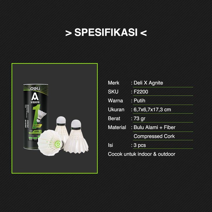 Agnite Shuttlecock / Kok Badminton / Kok BuluTangkis Premium High Quality Isi 3 dan 6 F2200 F2201