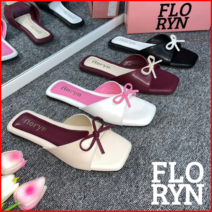 Floryn Shoes - Windy Sandal Teplek Wanita Coquette Slop Tali Pita Kombinasi Casual Kekinian Terbaru