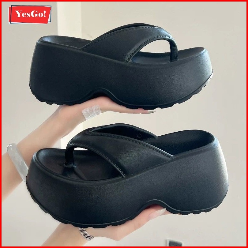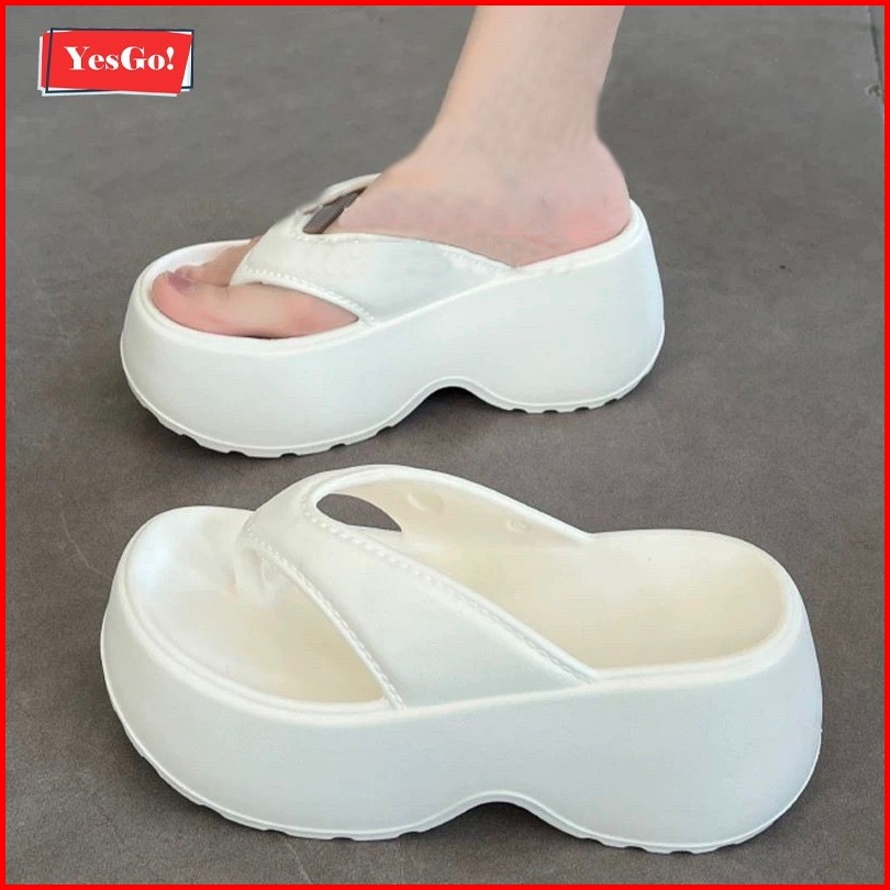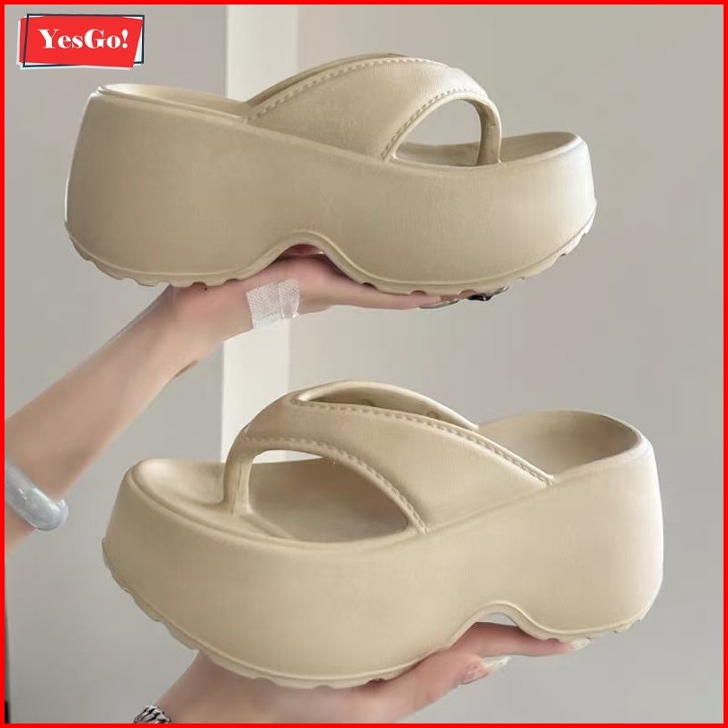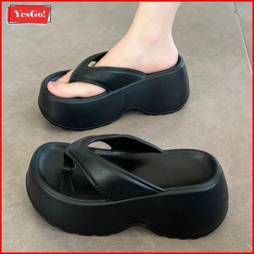 Yesgo Sandal Jepit Eva Sandal Wedges Jelly Sol Tebal Polos Import Tinggi 6 Cm Antislip