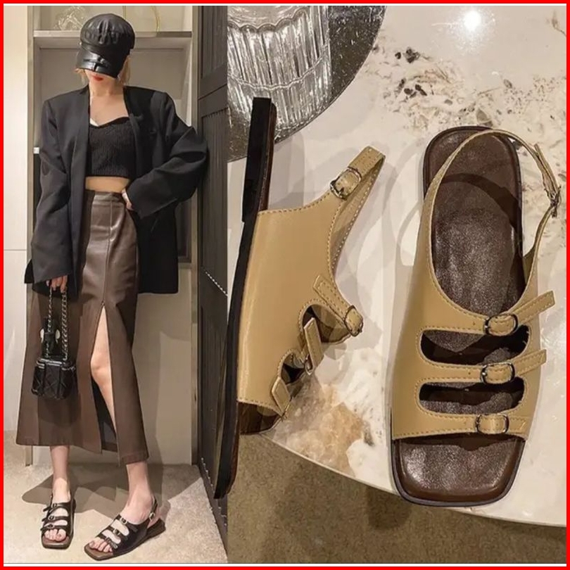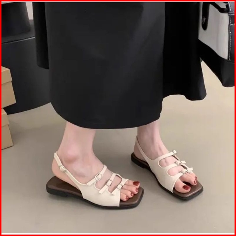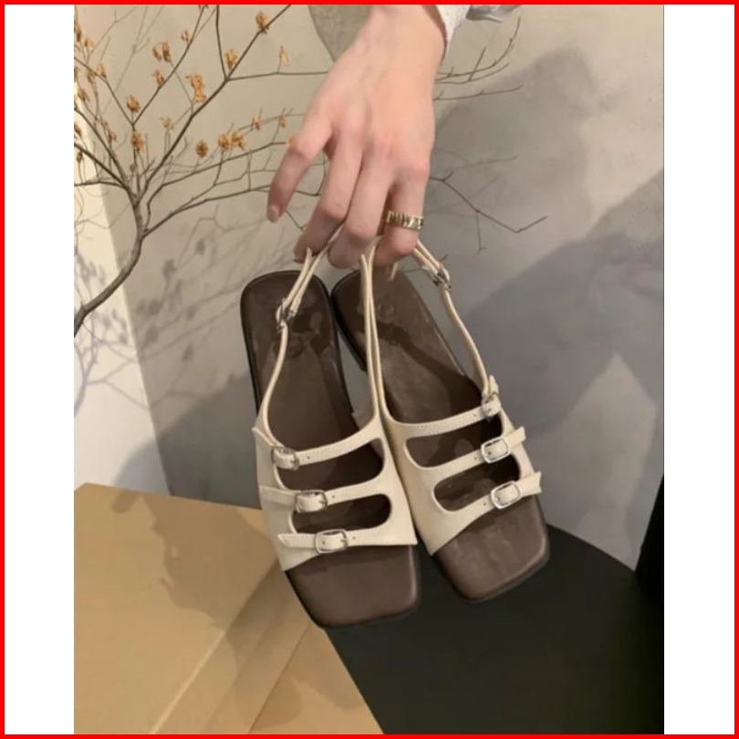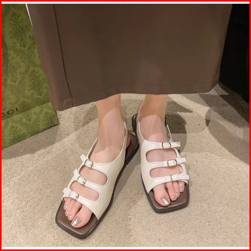 Ivana Sandal Teplek Wanita Naommi Gesper Tali Belakang Full Busa Empuk - Karet Flat Shoes Hak 1cm - Sendal