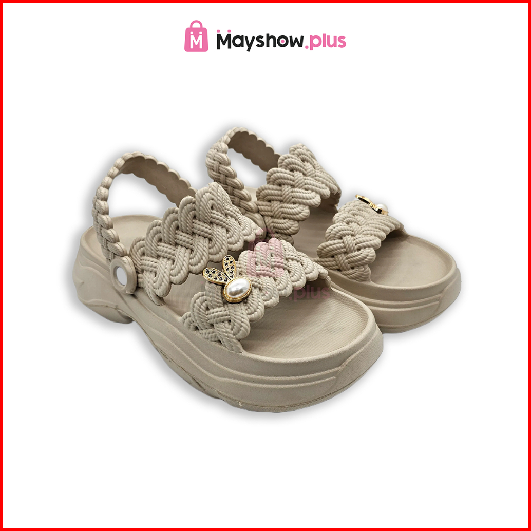 Mayshow.plus Sandal Wedges Wanita Fuji Motif Renda Kekinian Eva Tinggi Sol Tebal 36-40 F825 F825-2