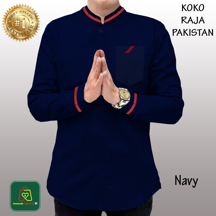 Baju Koko Pria QURTA RAJA PAKISTAN JUMBO Katun Lengan Panjang M - XXXL / 15351-15359
