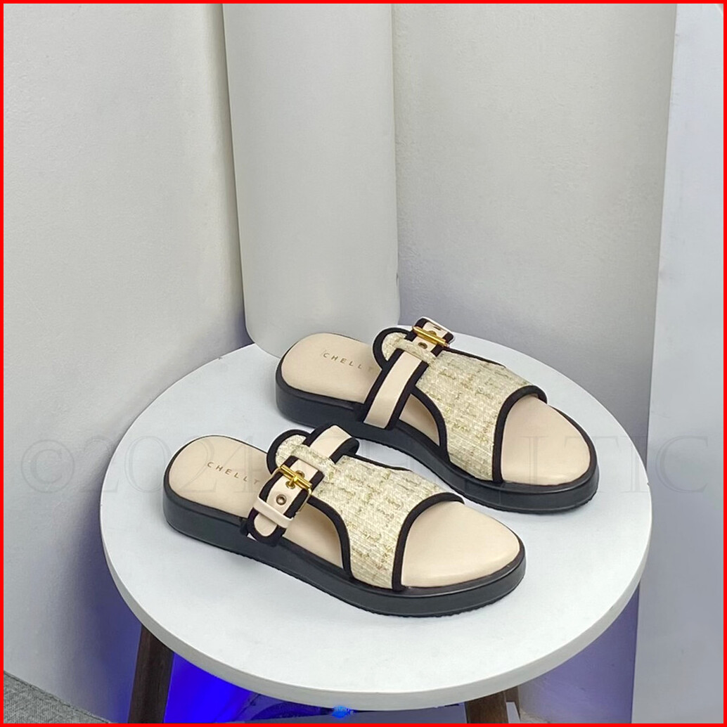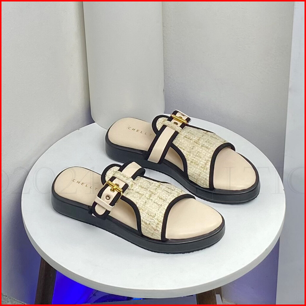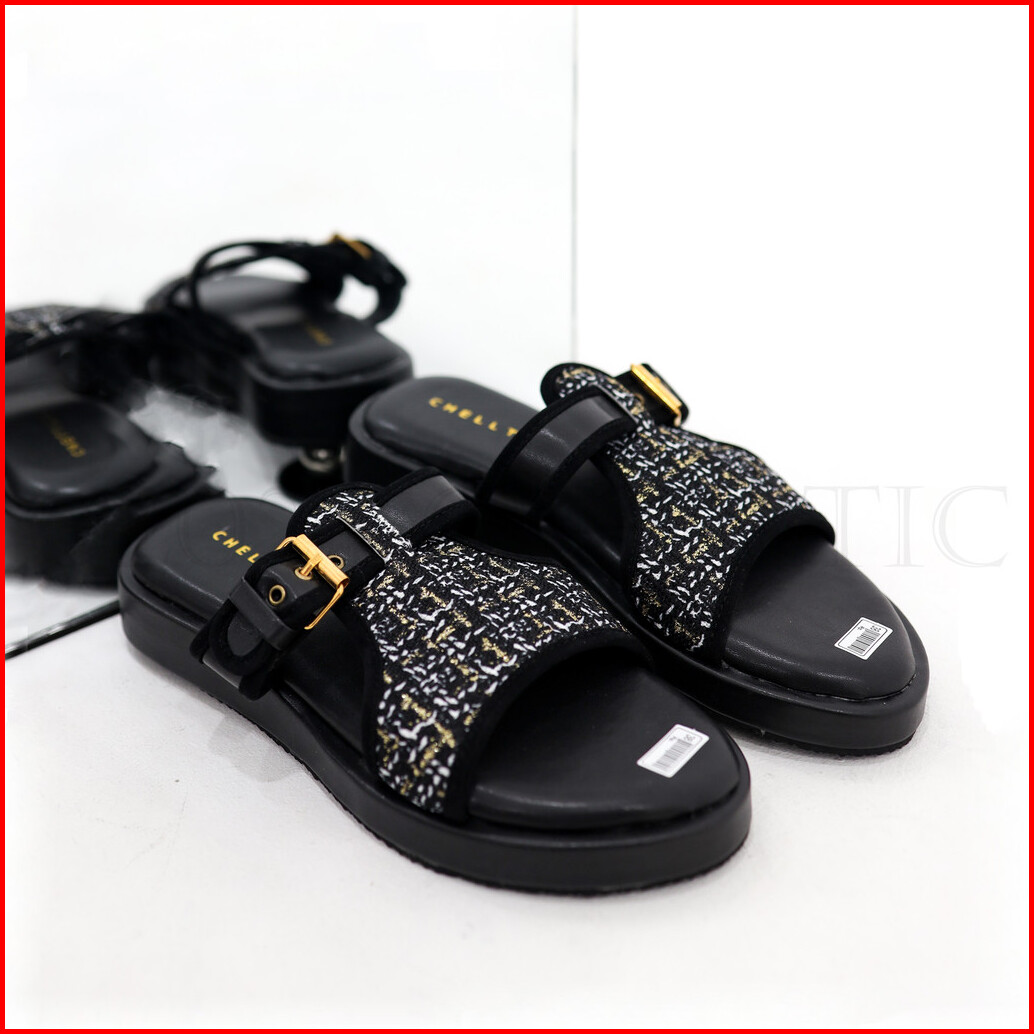 Chelltic - Sandal Wedges Wanita Kekinian Terbaru 2cm Sndal Wdges Casual Cewek Korea Selop Slip On Strap Tali Sendal Plat