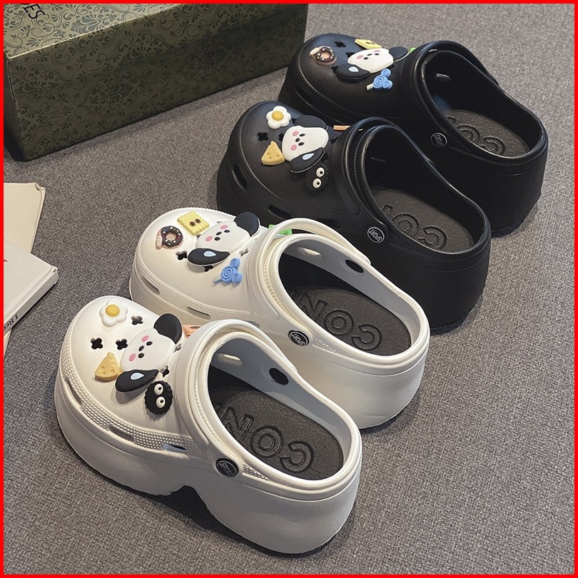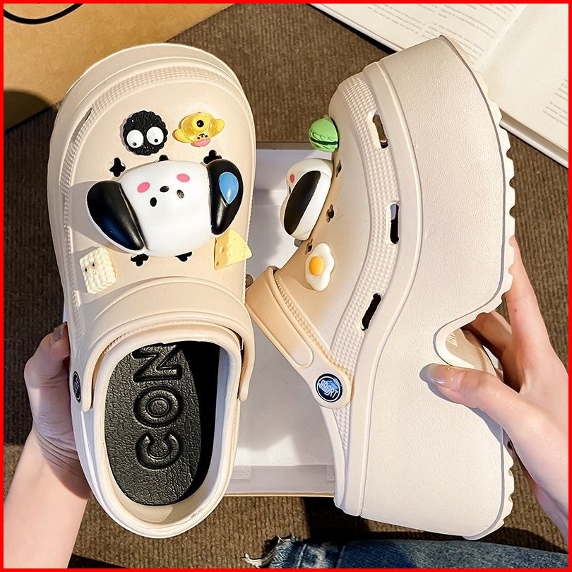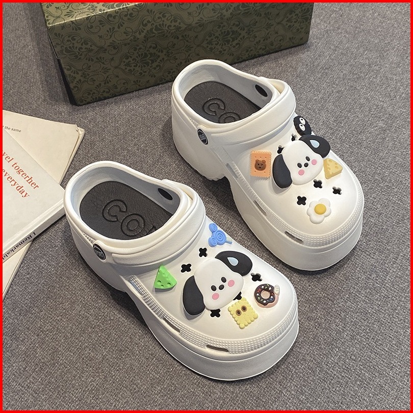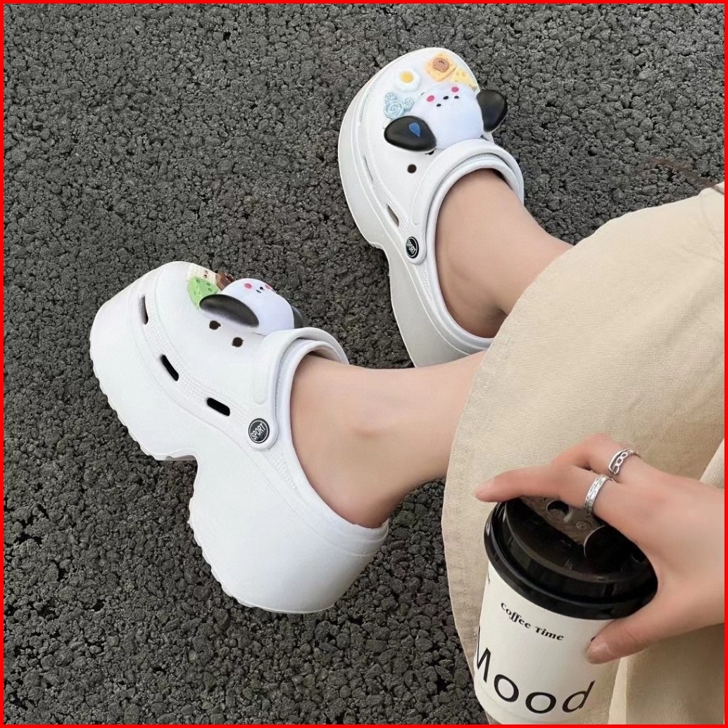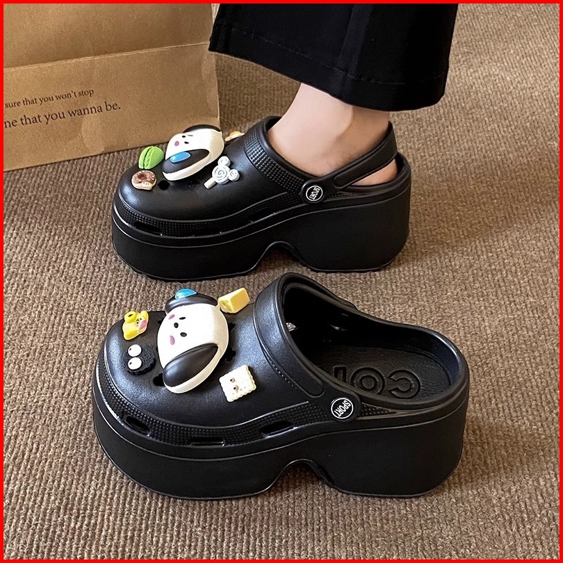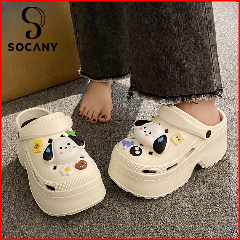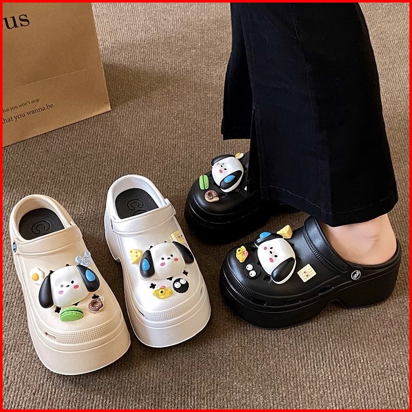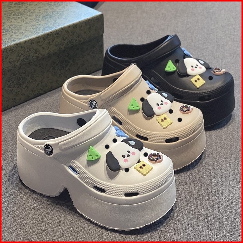 Socany Sandal Kodok Wanita Kartun Anjing Diy Tinggi 7cm Sandal Baim Wedges Sandal Jelly Anti-selip Eva Size 35-40