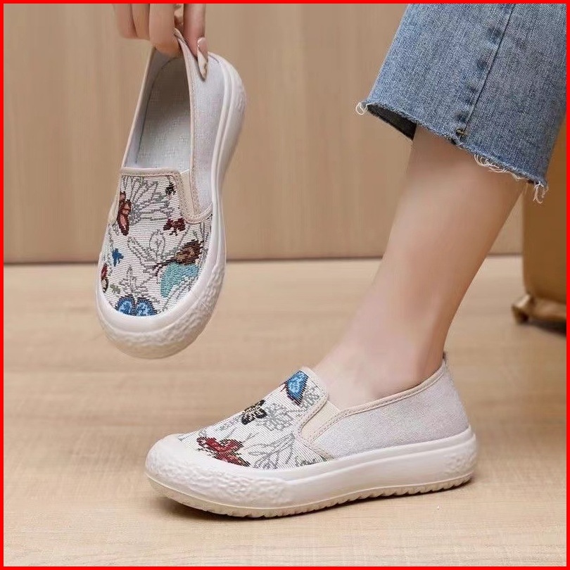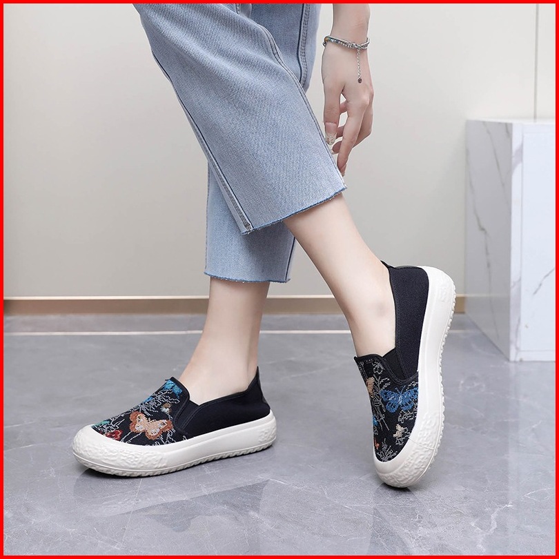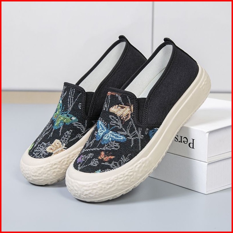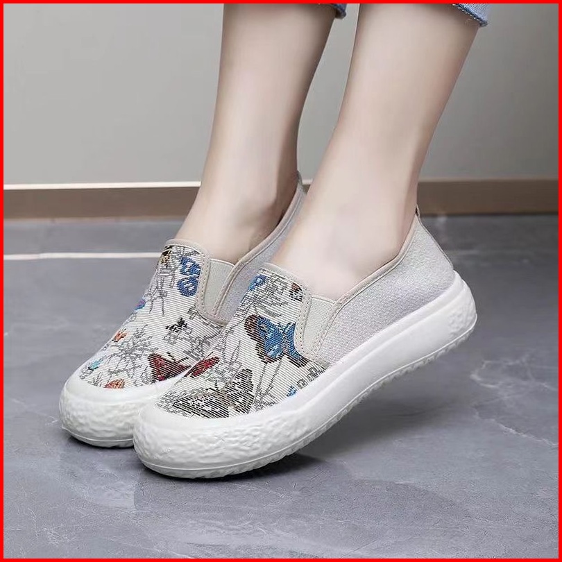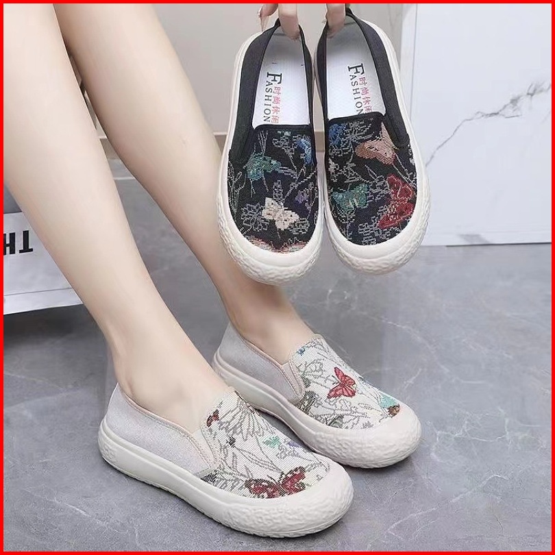 Nw059 Sepatu Slip On Wanita Motif Kupu-kupu