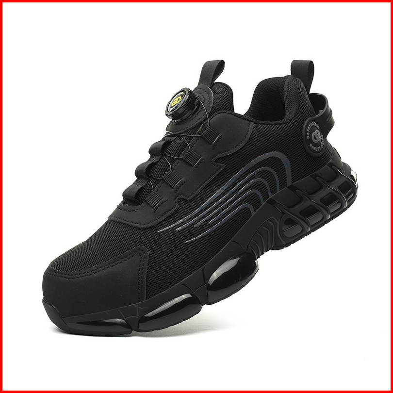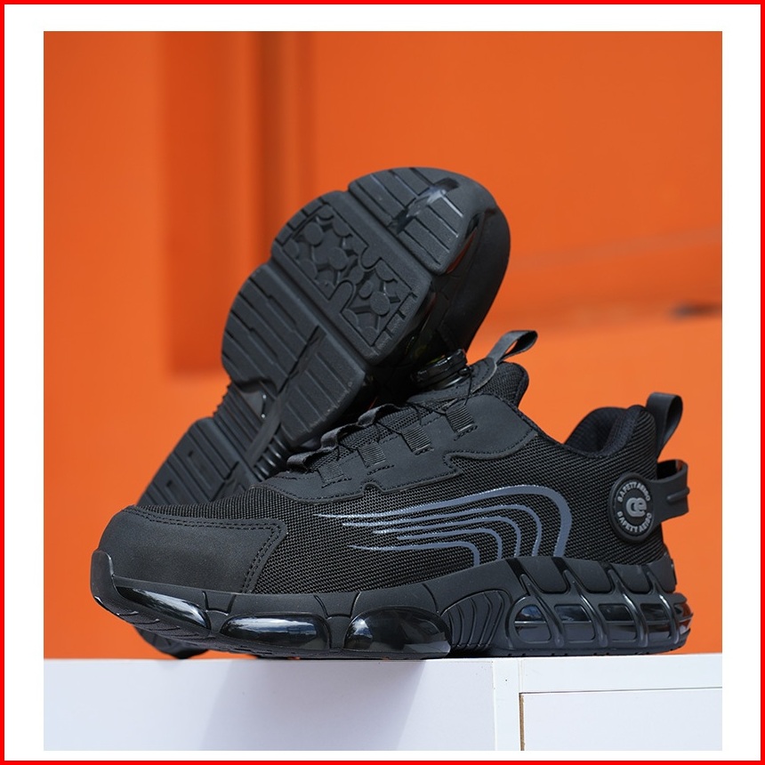 Sepatu Safety Tactikal Tali Putar Ujung Besi Hitam Casual Aeiso