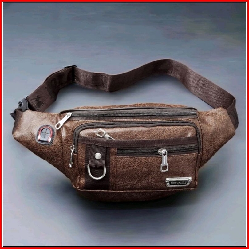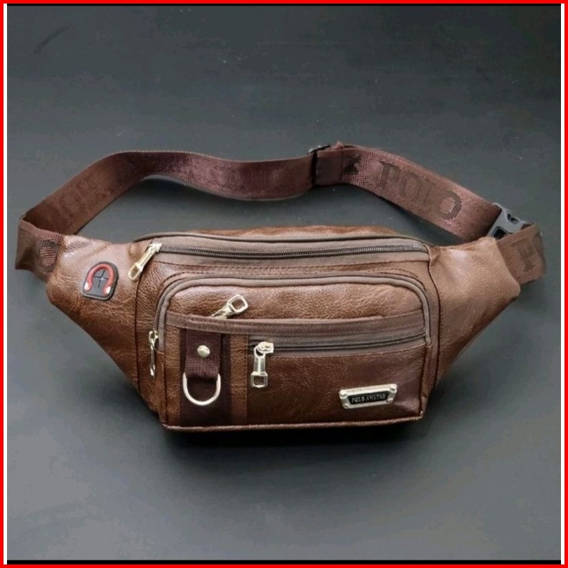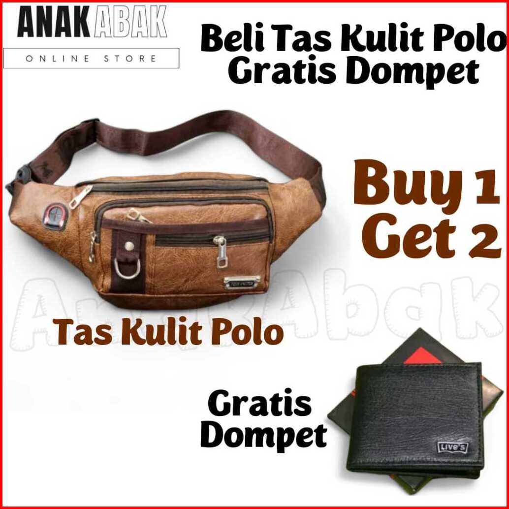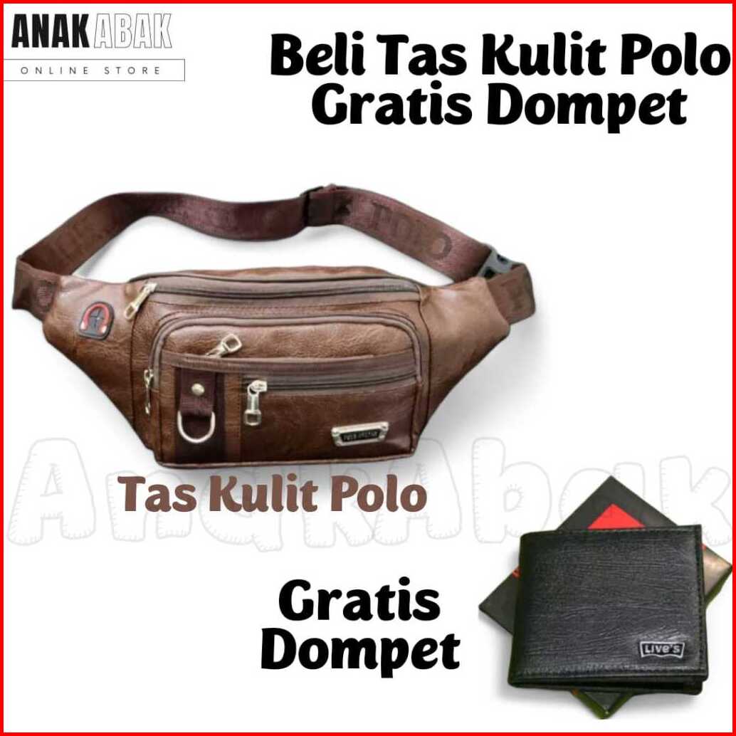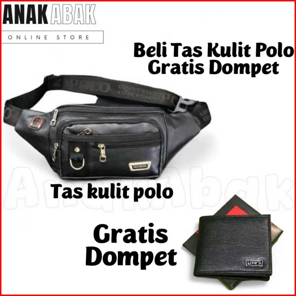 Paket Tas Kulit Samping Pinggang Selempang Kulit Laki Waterproof Polo Antiair Multifungsi Dapat Dompet Pria Terbaru