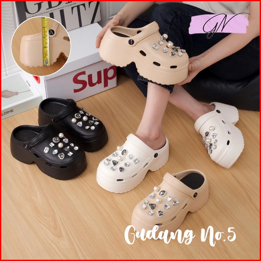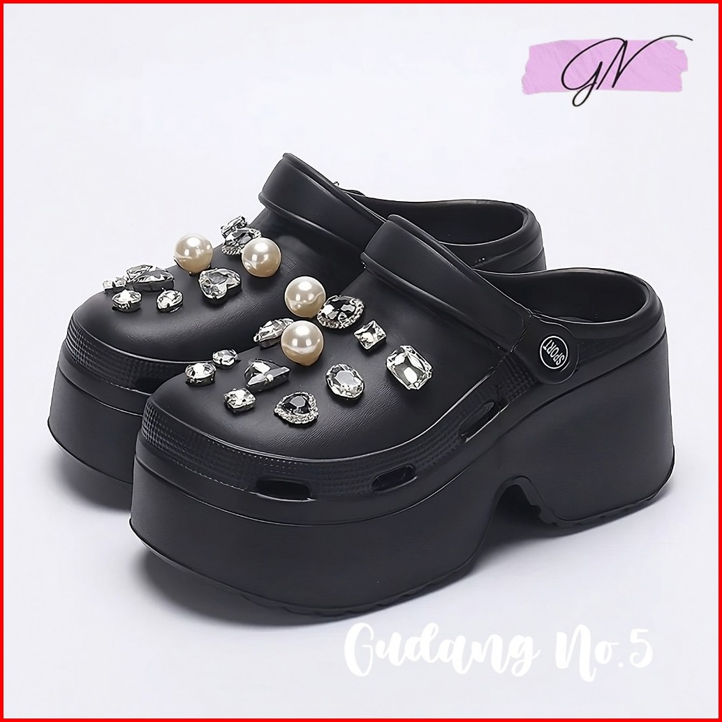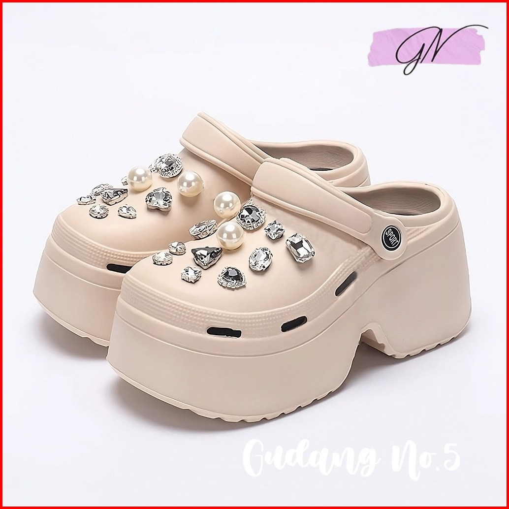Gn-8899-6 Sandal Baim Eva Rubber Import Sandal Fuji Jibbitz Mutiara 3d Tinggi 9 Cm Terbaru Anti Slip