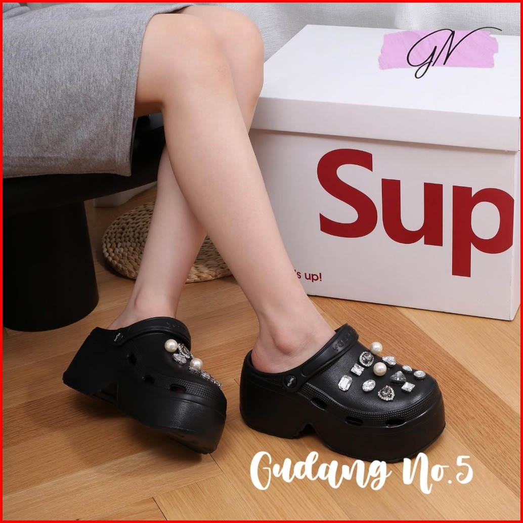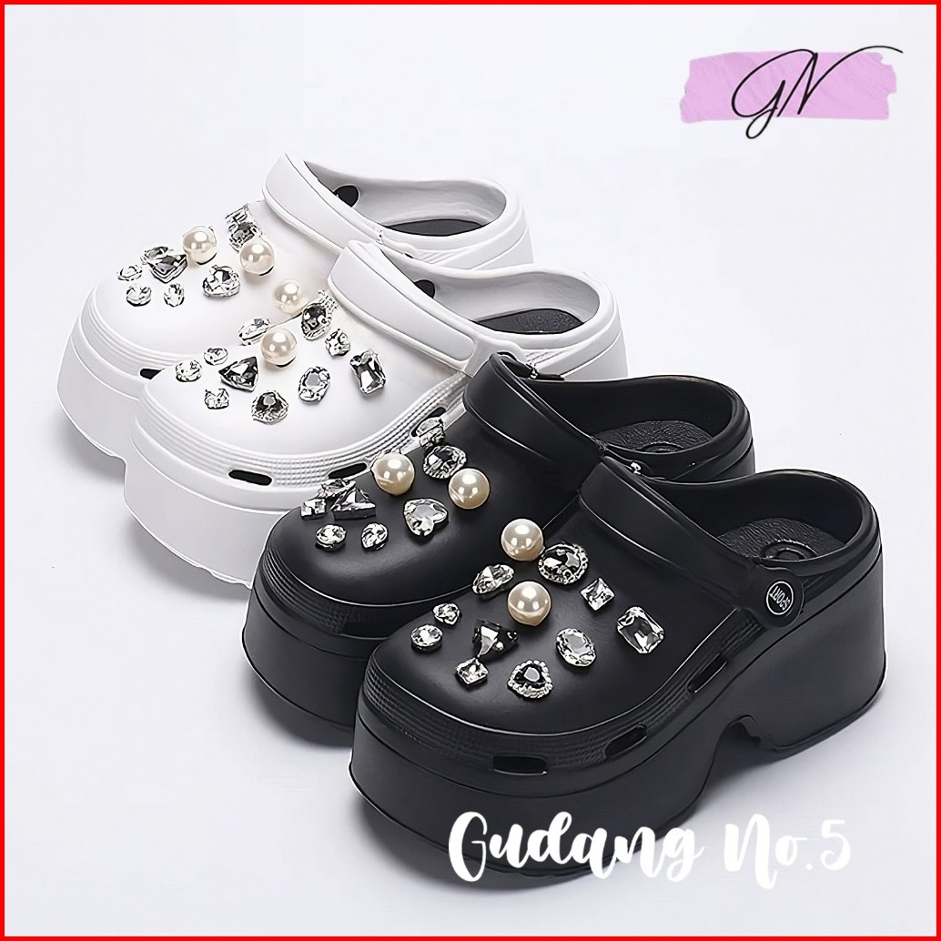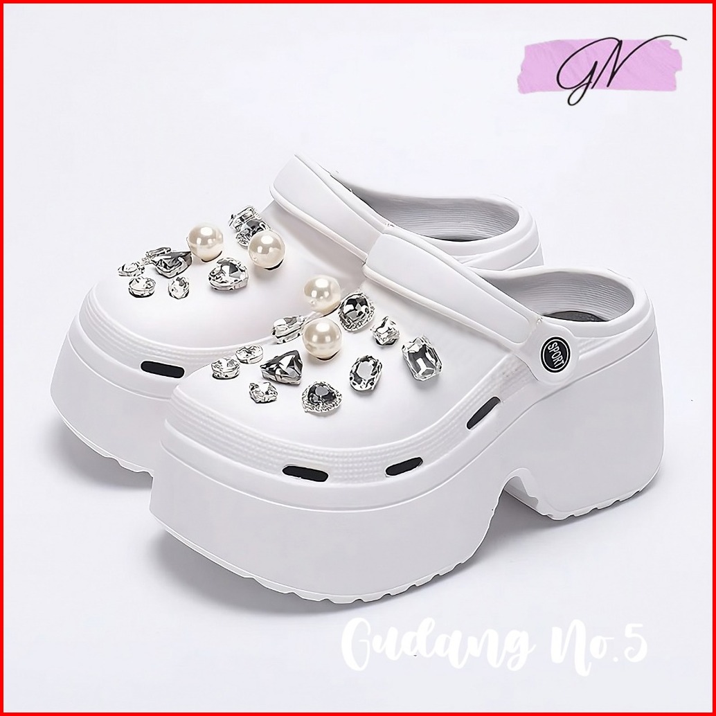 Gn-8899-6 Sandal Baim Eva Rubber Import Sandal Fuji Jibbitz Mutiara 3d Tinggi 9 Cm Terbaru Anti Slip