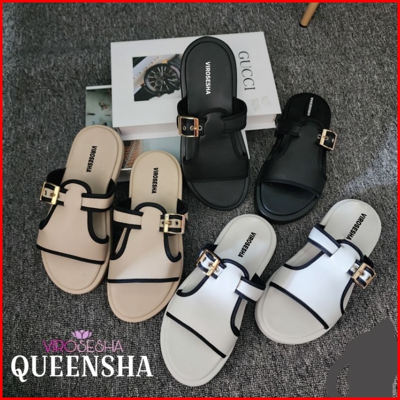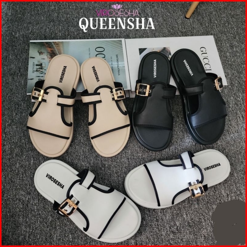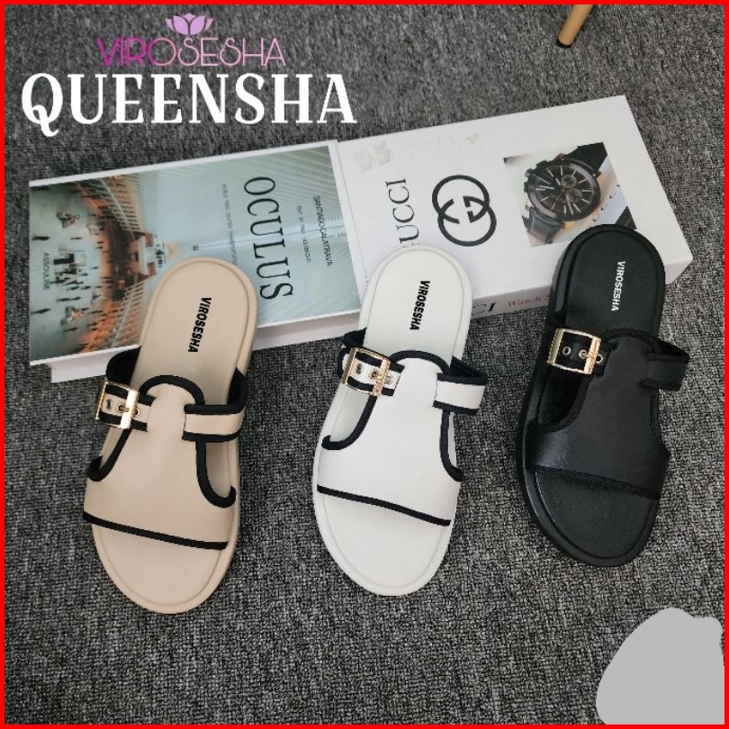 Virosesha - Quensha Sandal Slop Wanita Ringan Lucu Super Elegant Lucu Free Gift