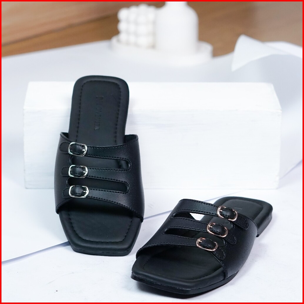Lovevita - Sandal Wanita Slop Tessa Sandal Cewek Slip On Simple Gesper Casual Hangout
