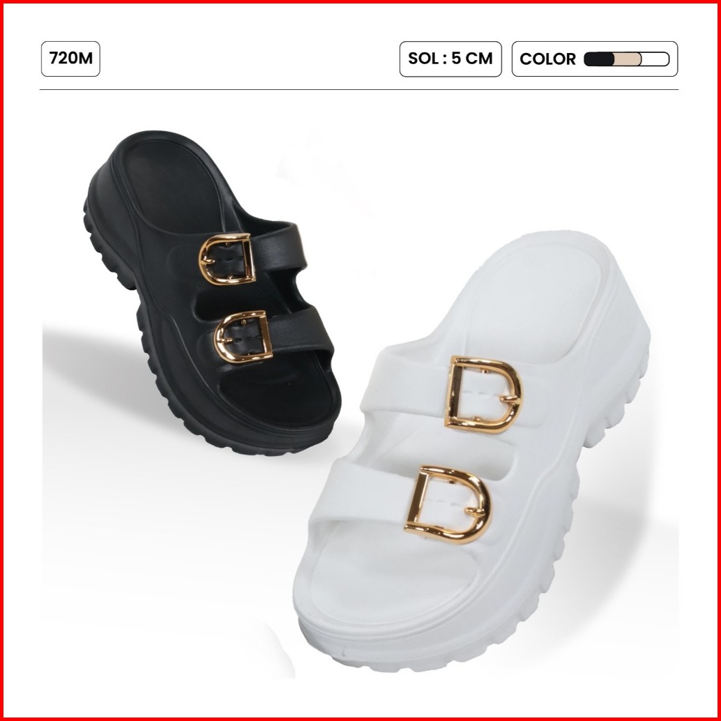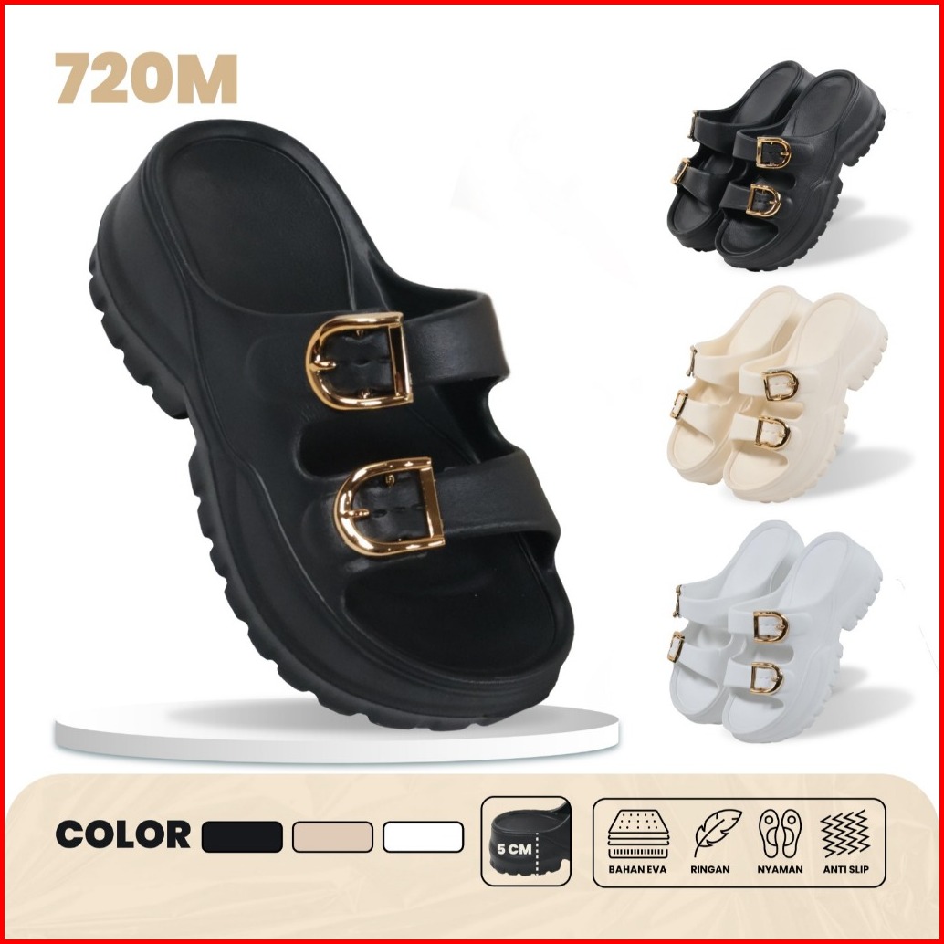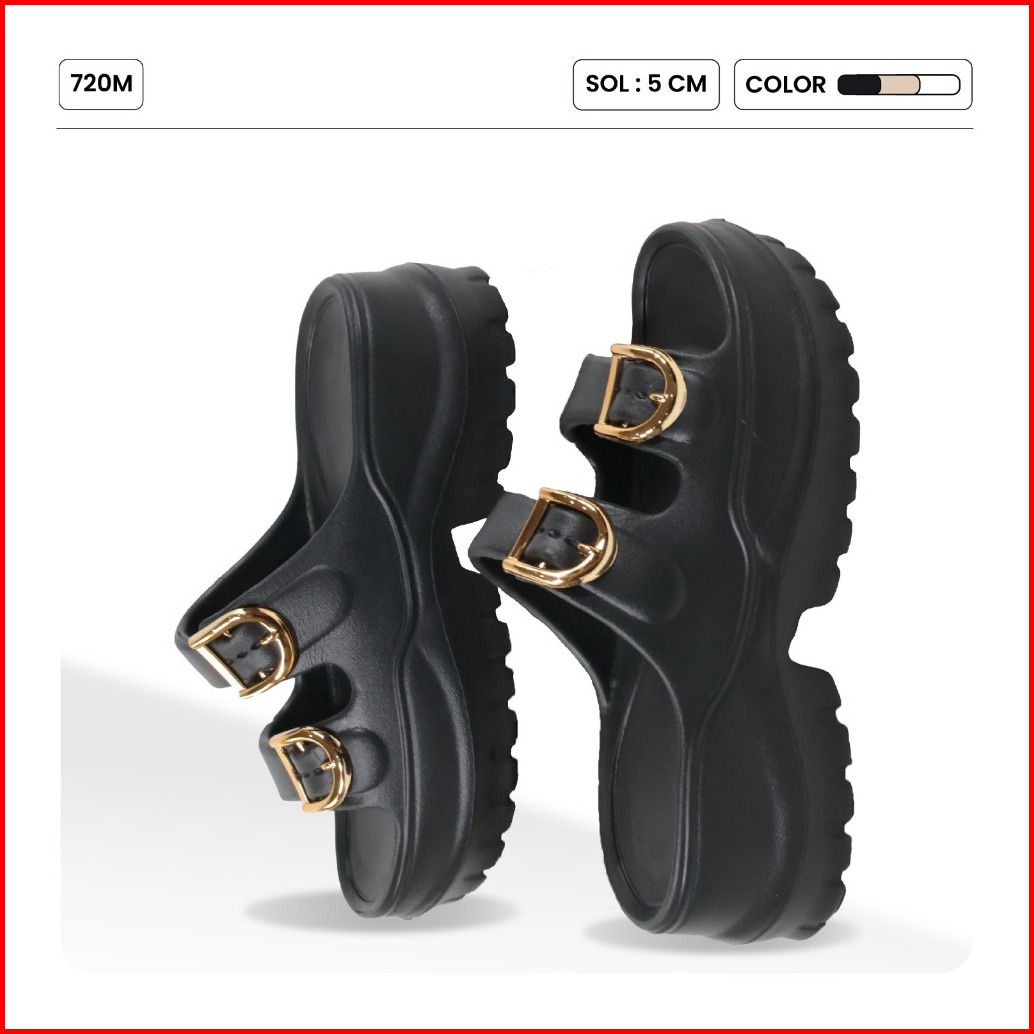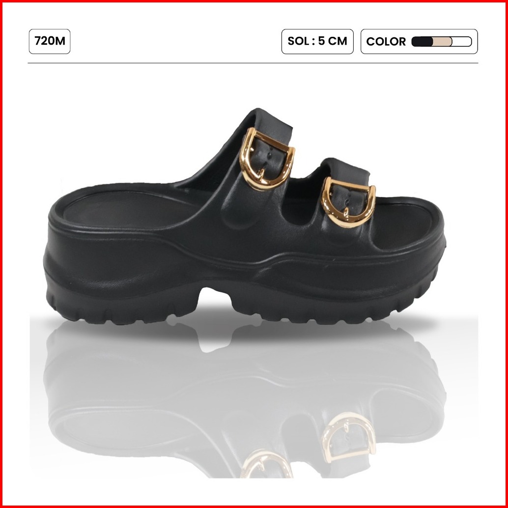 Sandal Wanita 720m Hitam Selop Wedges Tinggi 7 Cm Bahan Karet Eva Rubber Anti Slip Anti Licin