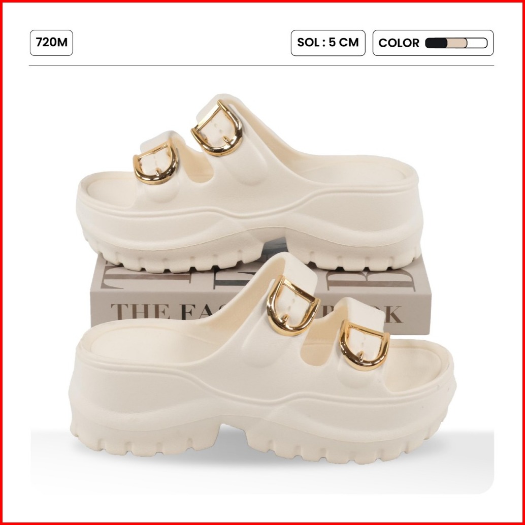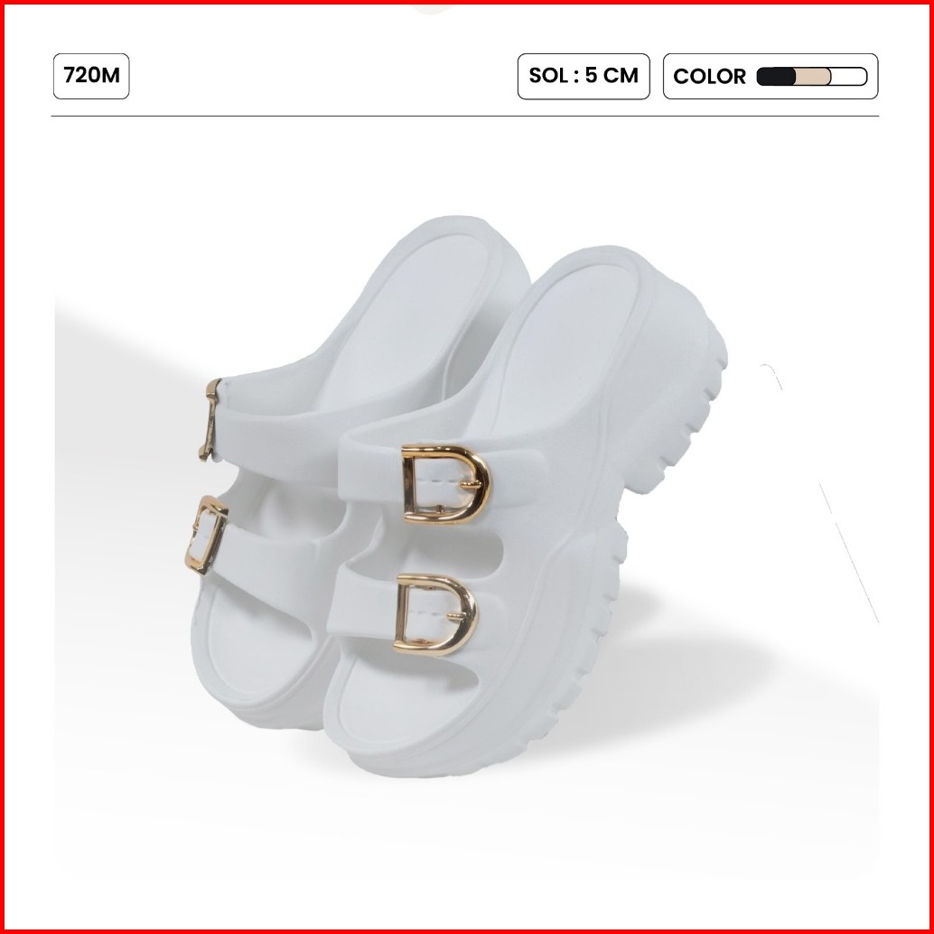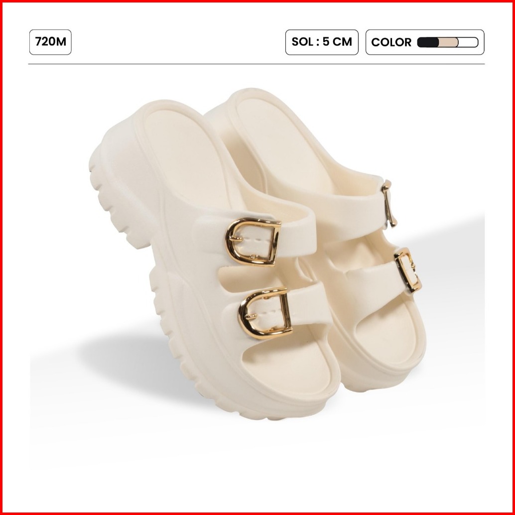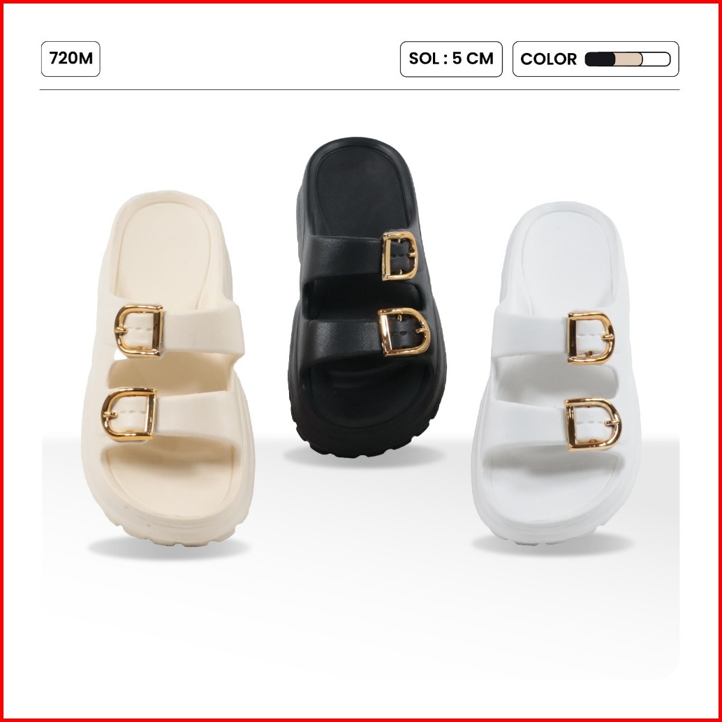 Sandal Wanita 720m Hitam Selop Wedges Tinggi 7 Cm Bahan Karet Eva Rubber Anti Slip Anti Licin