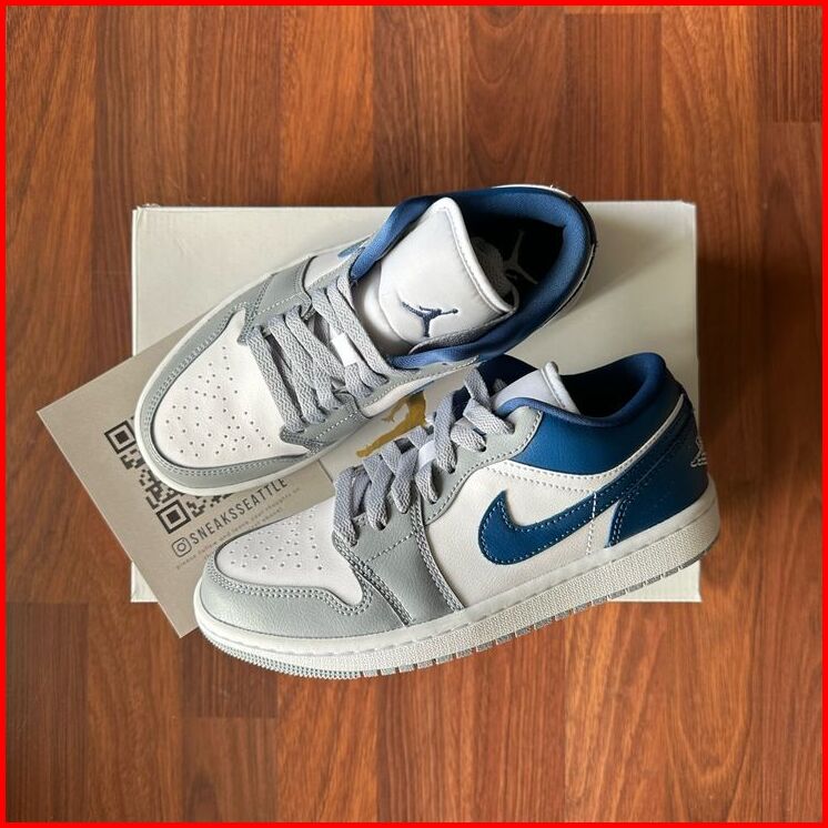 Sepatu Sneakers Alr J0rdan Low Navi Abu Putih French Blue Size 36-44 Pria Dan Wanita