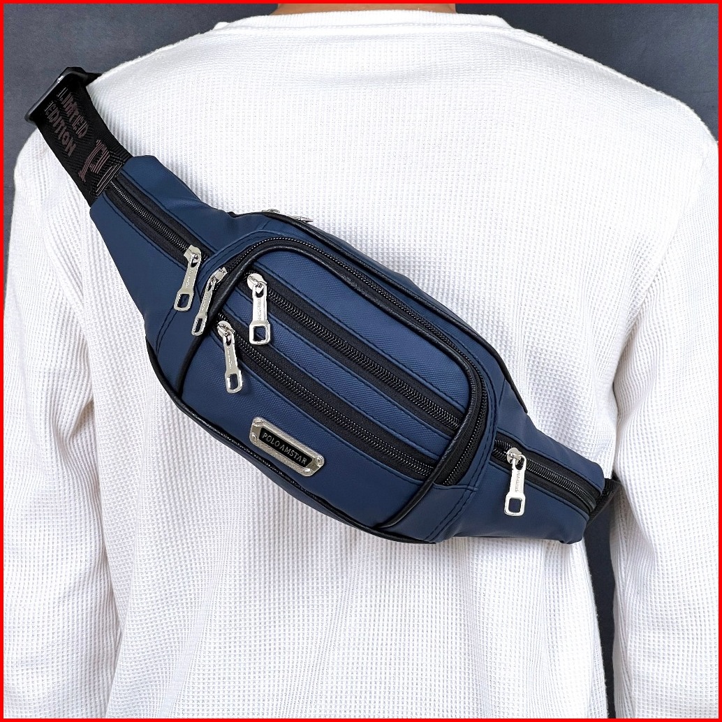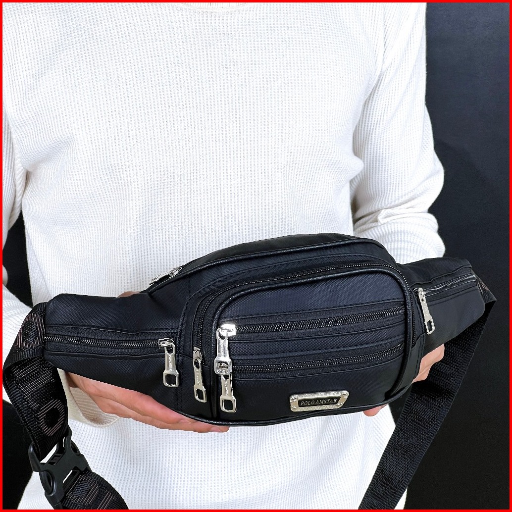 Tas Selempang Pria Polo Amstar Speedy 1.0 Waistbag Slingbag Waterproof Tas Pinggang 7 Ruang Anti Air