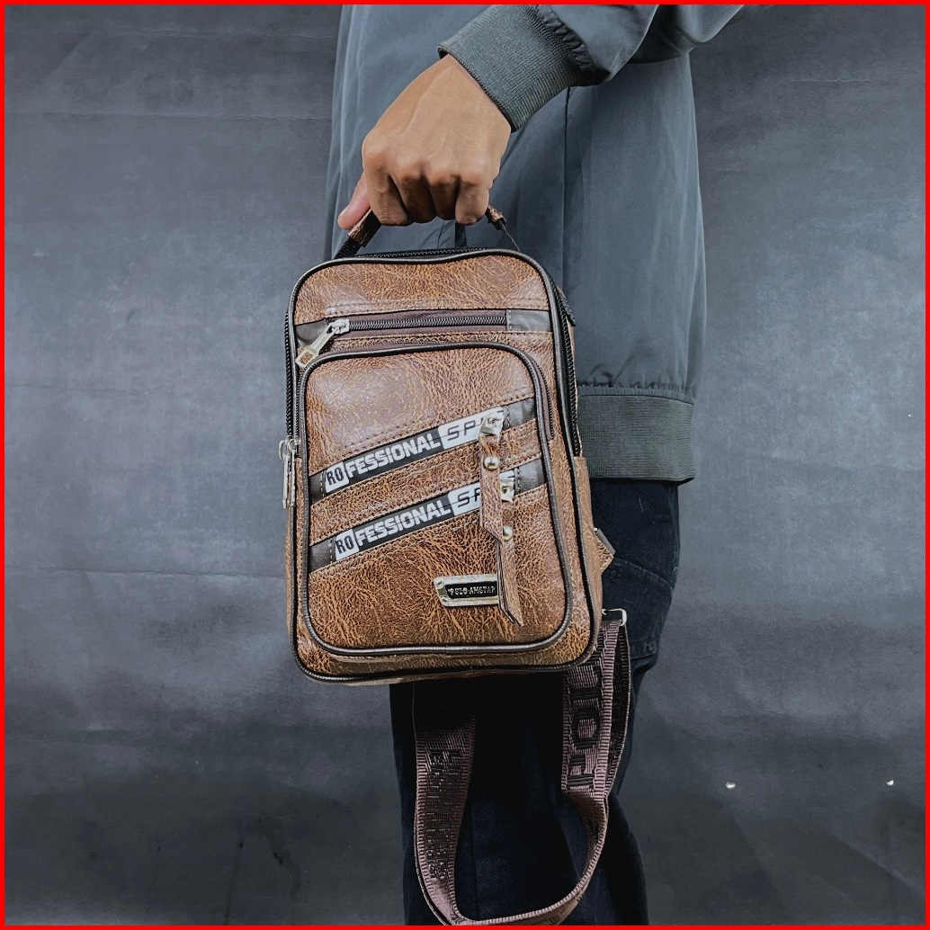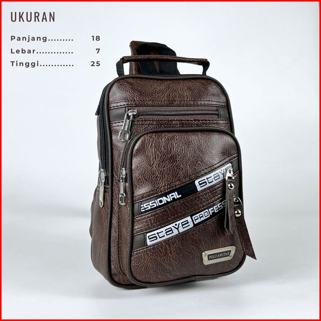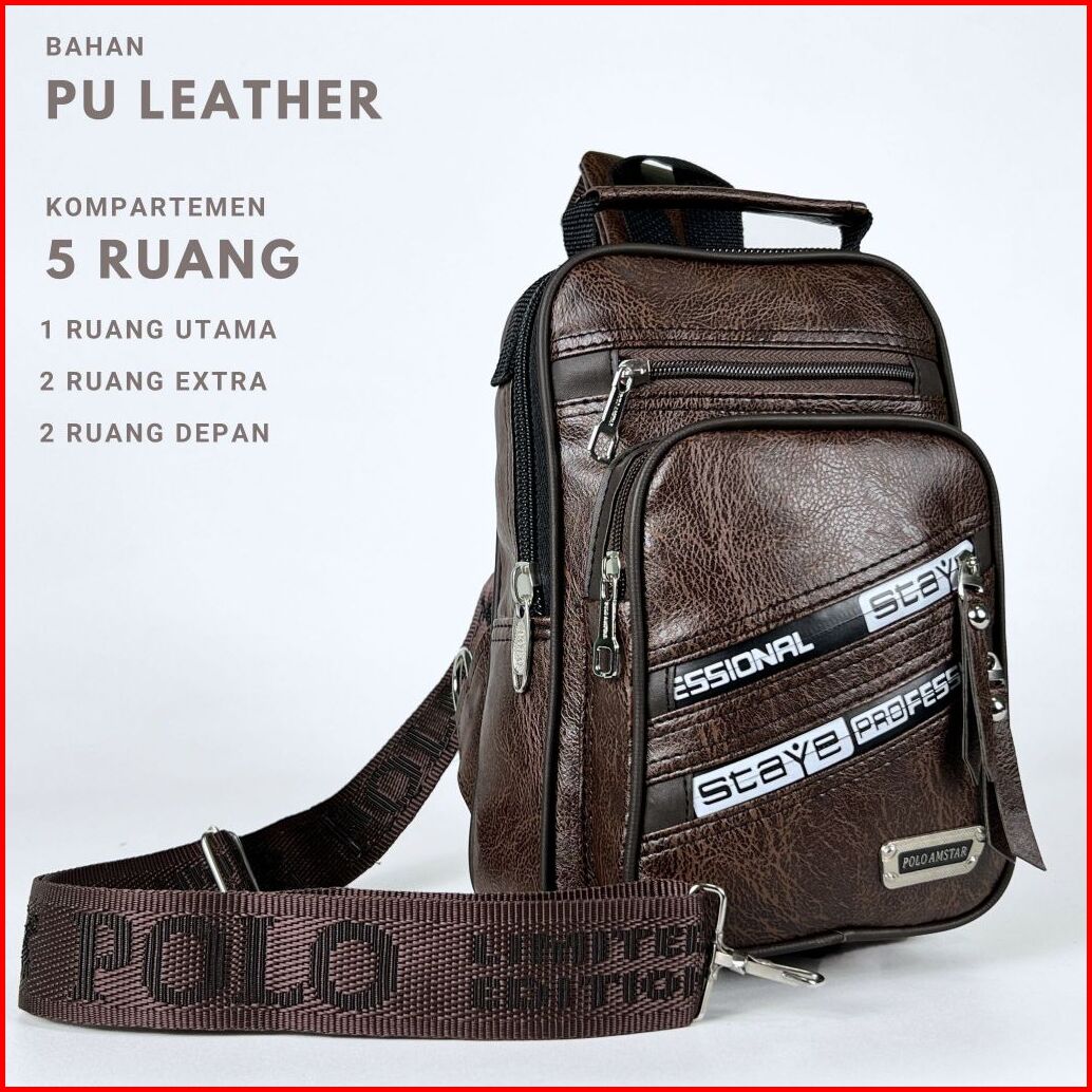 Slingbag Pu Leather Premium Traveler 1.0 Polo Amstar Original Tas Selempang Kulit Pria